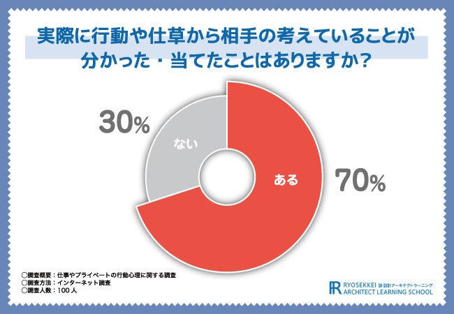 7割の方が「行動や仕草から相手の考えていることを当てたことがある」と回答!