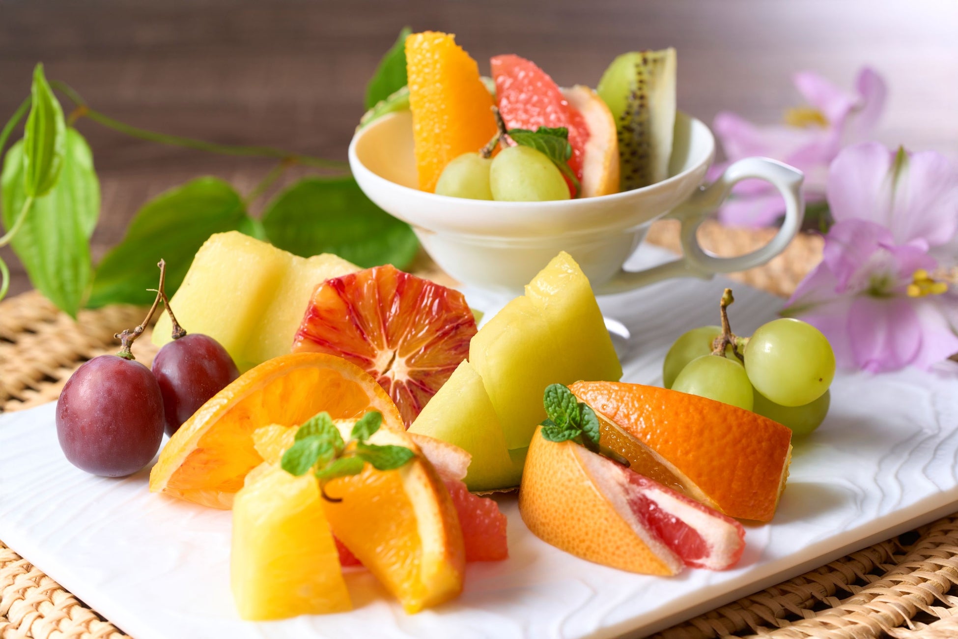 デザートも充実。市場直送の旬のフルーツの盛り合わせや、フルーツショートケーキをはじめとするケーキなど、一度のご利用では食べ切れないほどのデザートを取り揃えました。
