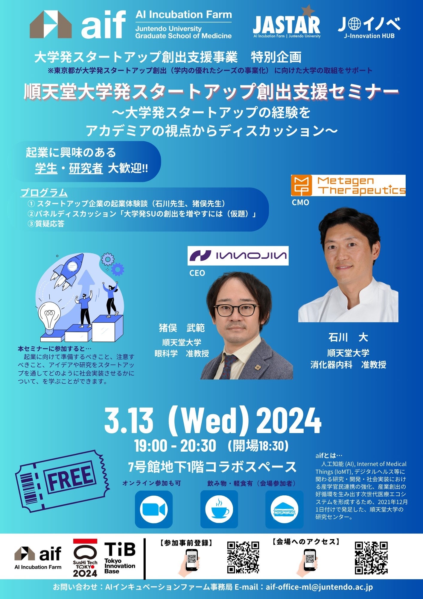 順天堂大学AIインキュベーションファーム 順天堂大学発スタートアップ創出支援セミナー