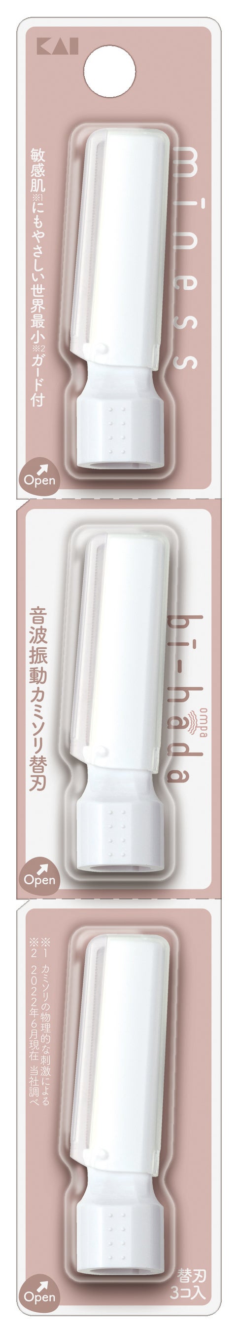 今回は新たに、音波振動カミソリ「miness bi-hada ompa L」をフェイス用カミソリとして発売します。「miness bi-hada ompa L」は、1秒間に約100回振動する音波振動によって刃が円を描くように動くため、肌への抵抗が少なくなり、まるでなでるような感覚で剃ることができます。また、世界最小※2ガードを搭載することにより、刃が肌に与える刺激を軽減しており、敏感肌※3の方にもやさしい剃り心地でお使いいただけます。