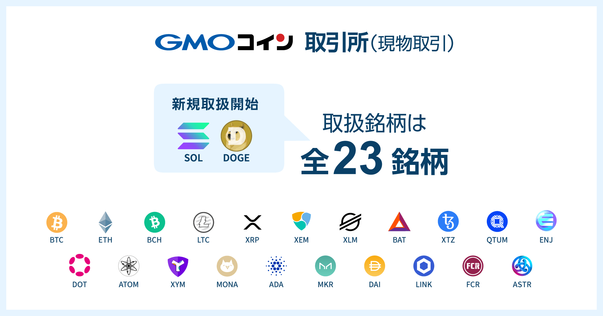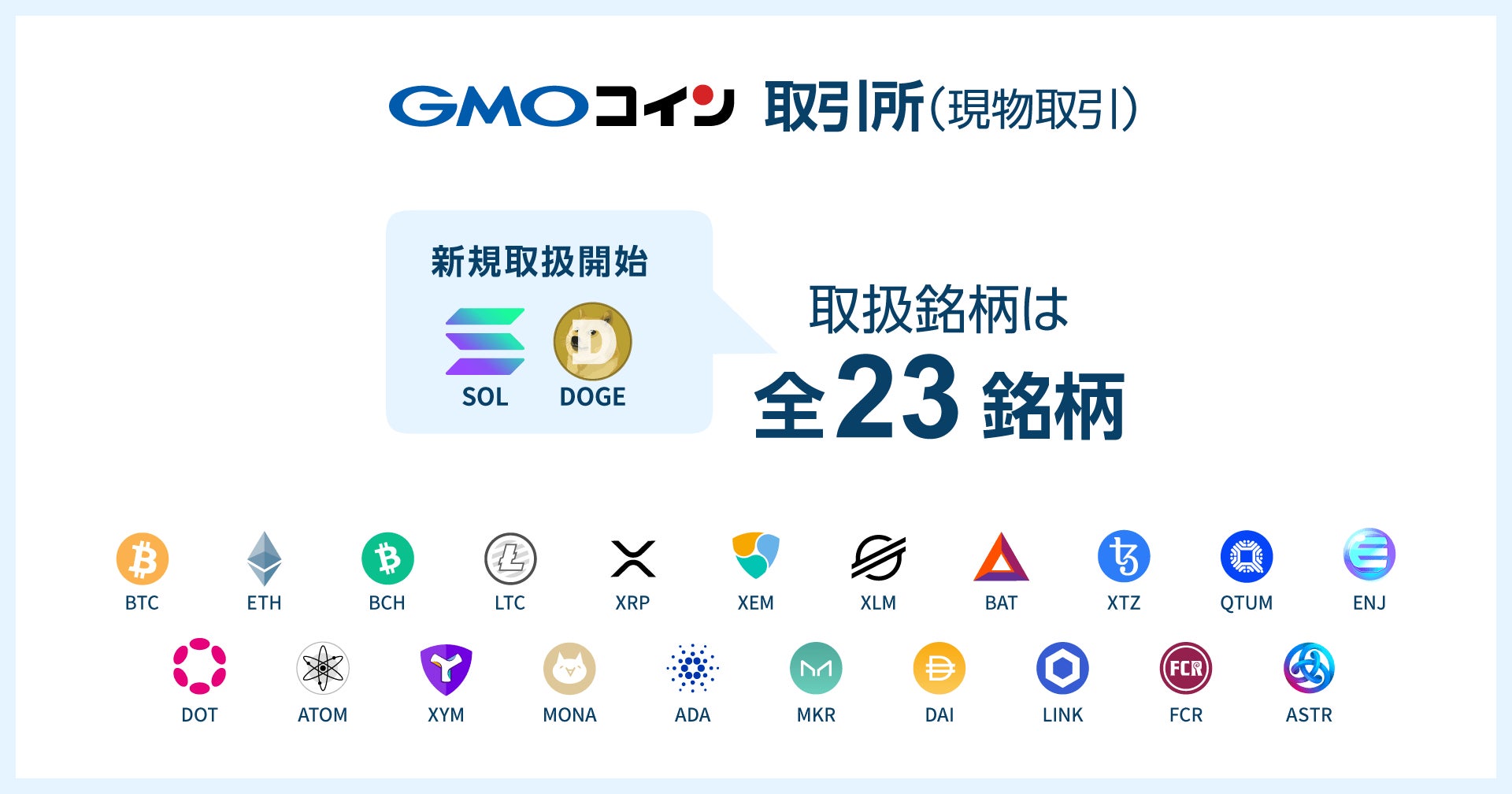 GMOコイン:【取引所(現物取引)】ドージコイン(DOGE)、ソラナ(SOL)の取り扱いを開始!