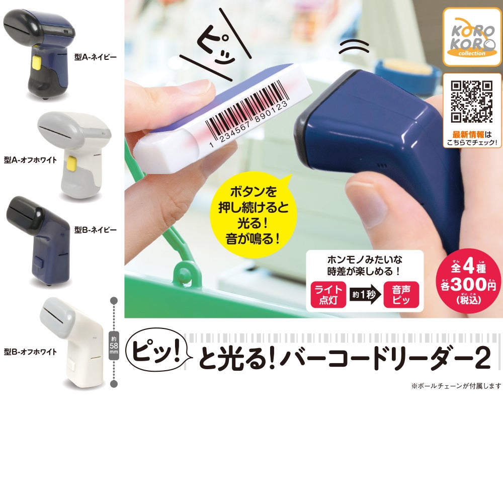 大好評いただいたバーコードリーダーが新色で登場!本物同様、ボタンを押し続ける事でライト&音が出るギミック付き。あれもこれもスキャンしちゃいましょう!?