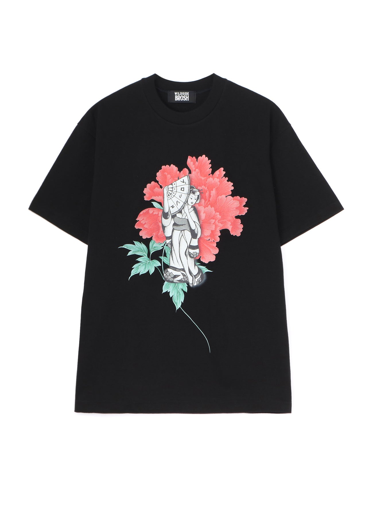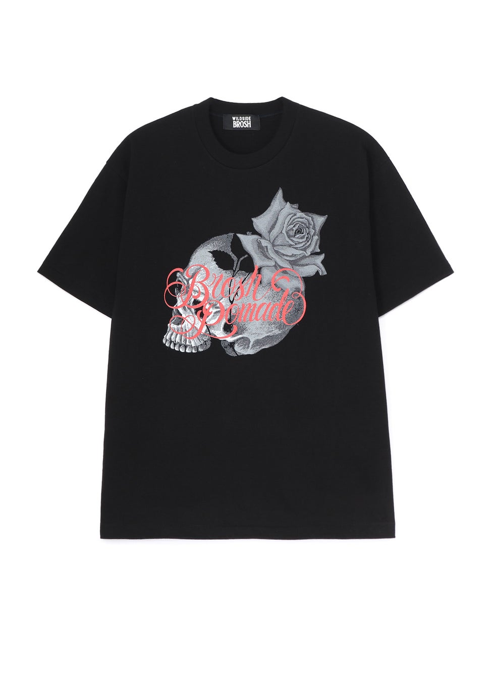 ヨウジヤマモトのアイコニックな柄であるスカルローズ、牡丹の花に、<BROSH>のロゴや柄を落とし込みデザインされたグラフィックをプリントした2種類の半袖Tシャツ、Yohji Yamamoto POUR HOMME 2003秋冬コレクションに登場したタトゥー柄をフロントと袖にプリントした長袖Tシャツは、少し肉厚で柔らかいコットン生地でゆとりあるサイズ感が特徴的です。また、フーディーのバックにはタトゥー柄にを象徴するフクロウのモチーフが入った特別なグラフィックをプリントしました。フロント左胸に配されたダブルネームのタイポグラフィーがアクセントとなっています。