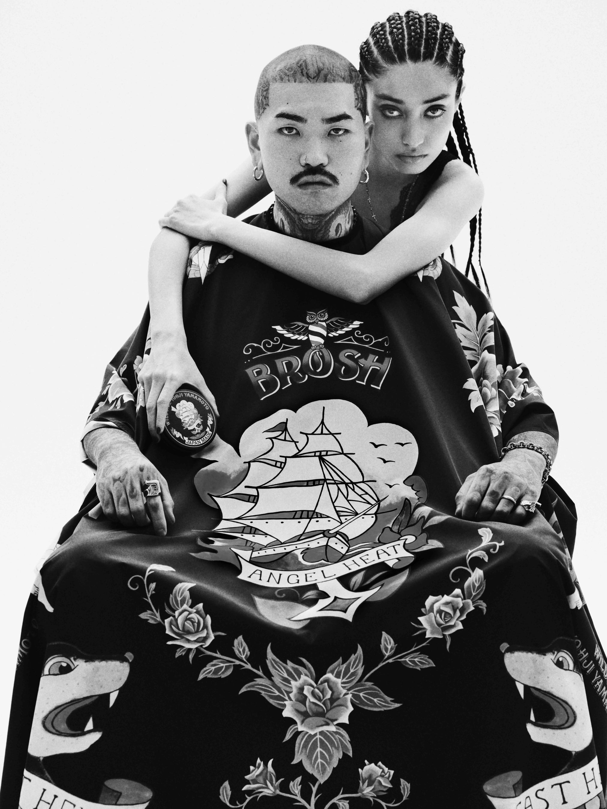 <BROSH>との初となるコラボレーションとして、Tシャツ、フーディーのファッションアイテム、また、ポマード、カットクロス、コームのメンズグルーミングアイテムを展開します。