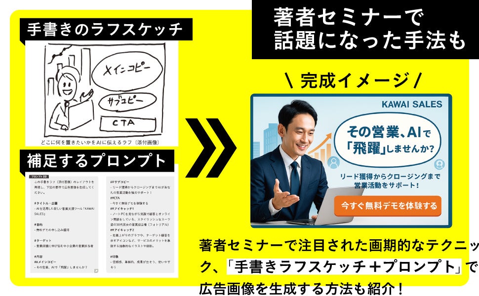 本書は、デザインスキルを基盤にAIやマーケティングの知見を融合させ、「AI×デザイン」の可能性を追求する著者が、生成AIで人を動かすクリエイティブをつくるための思考法から具体的なプロンプト設計、調整の技術までを体系的に解説します。
