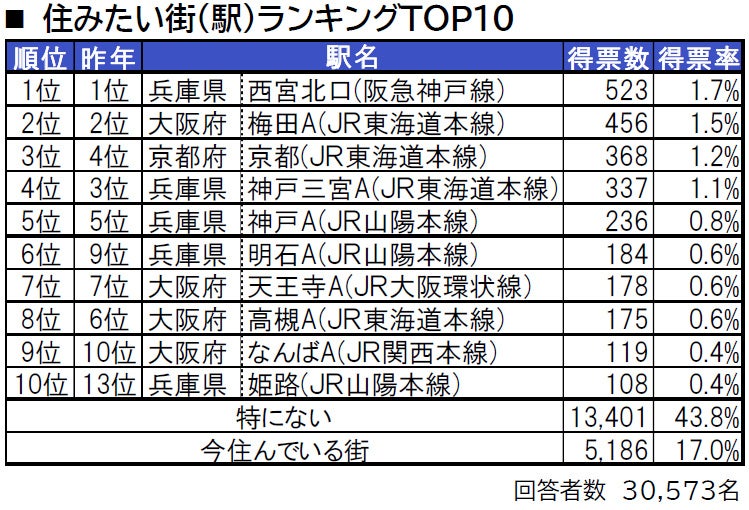 •住みたい街(駅)ランキングは、関西居住者の2022年回答を関西の駅を対象としてランキングを集計しています。住みたい街(自治体)は、関西居住者の2022年回答を全国の自治体を対象としてランキングを集計しています。