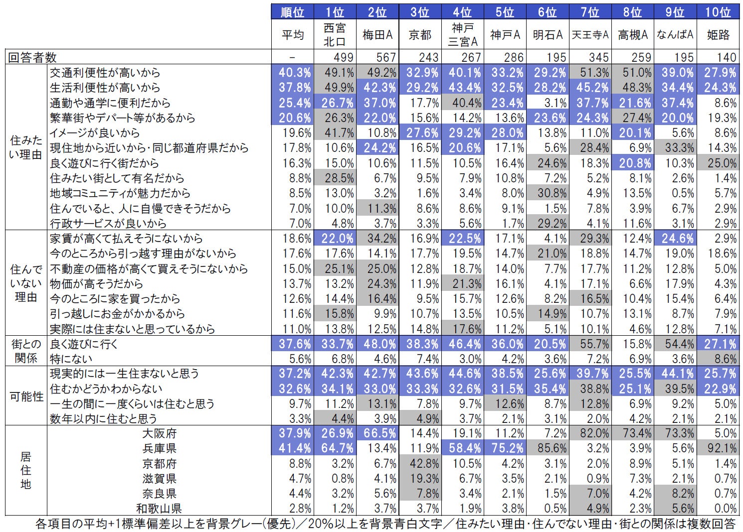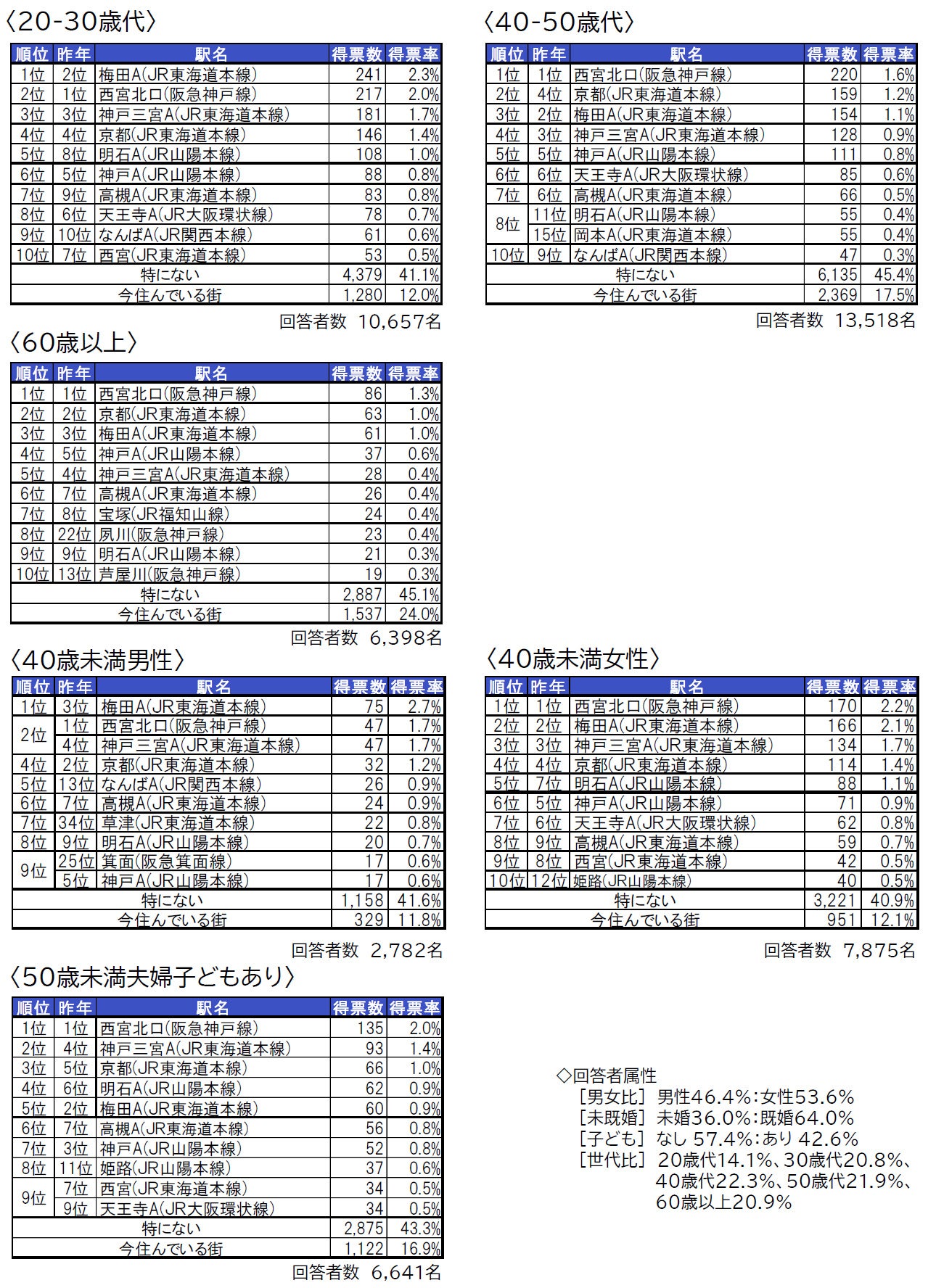 - 住みたい街ランキング2022<関西版>駅 回答者属性別TOP10