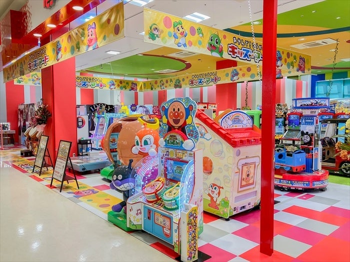リニューアルにより、店内を拡充し、人気のクレーンゲーム約120台を設置しております。プライズ(景品)は、大型ぬいぐるみや流行のアニメ・キャラクターグッズ、クレーンゲーム限定パッケージのお菓子まで、幅広い種類を豊富に取り揃えています。また、ほかにもメダルゲーム、プリントシール機、音楽ゲームから、お子様に人気の乗り物ゲームなどもお楽しみいただけます。
