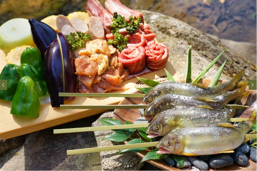 BBQメニューは地元のブランド食材「瀬戸山麓牛」や「瀬戸豚」、清流で育った鮎を使用し、素材の良さと贅沢さで人気。