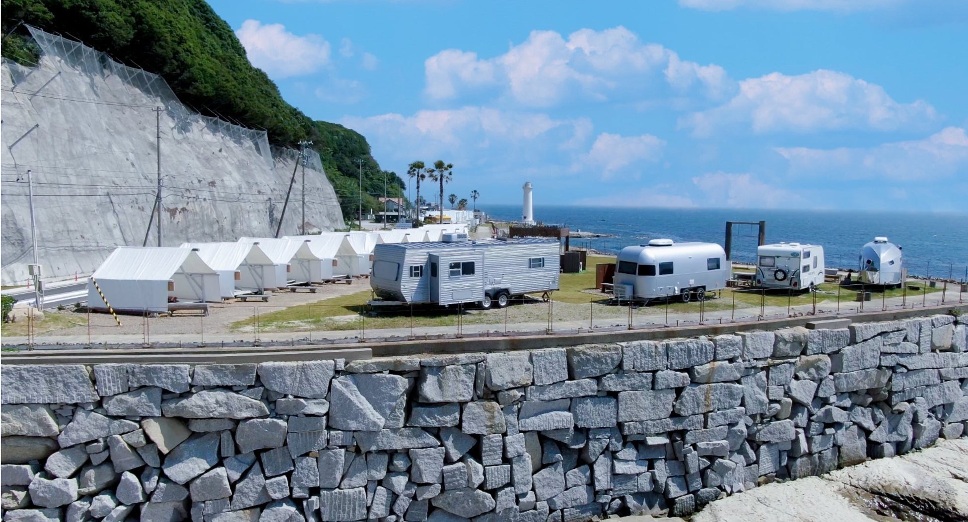 愛知県知多半島の三河湾国定公園としても指定される美しい海を眺めながらオーシャンビューBBQが楽しめます。名古屋市中心部から車で60分、野間灯台のすぐそばにあります。