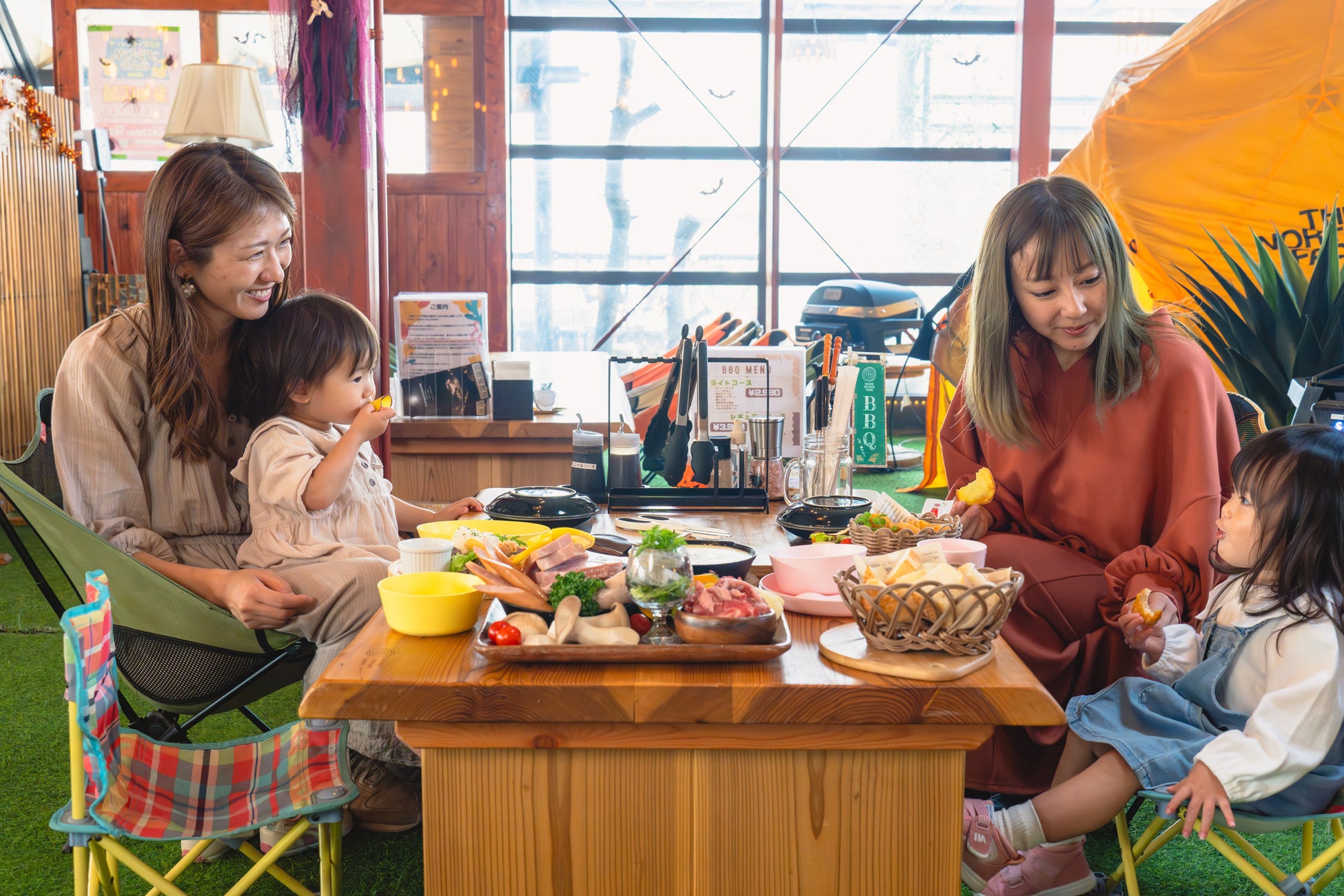 ウッドデザインパーク一宮の超人気プラン、冷暖房完備の【日帰りグランピングBBQプラン】は1日限定2組で提供しており、女子会や小さなお子様連れのご家族におすすめです。