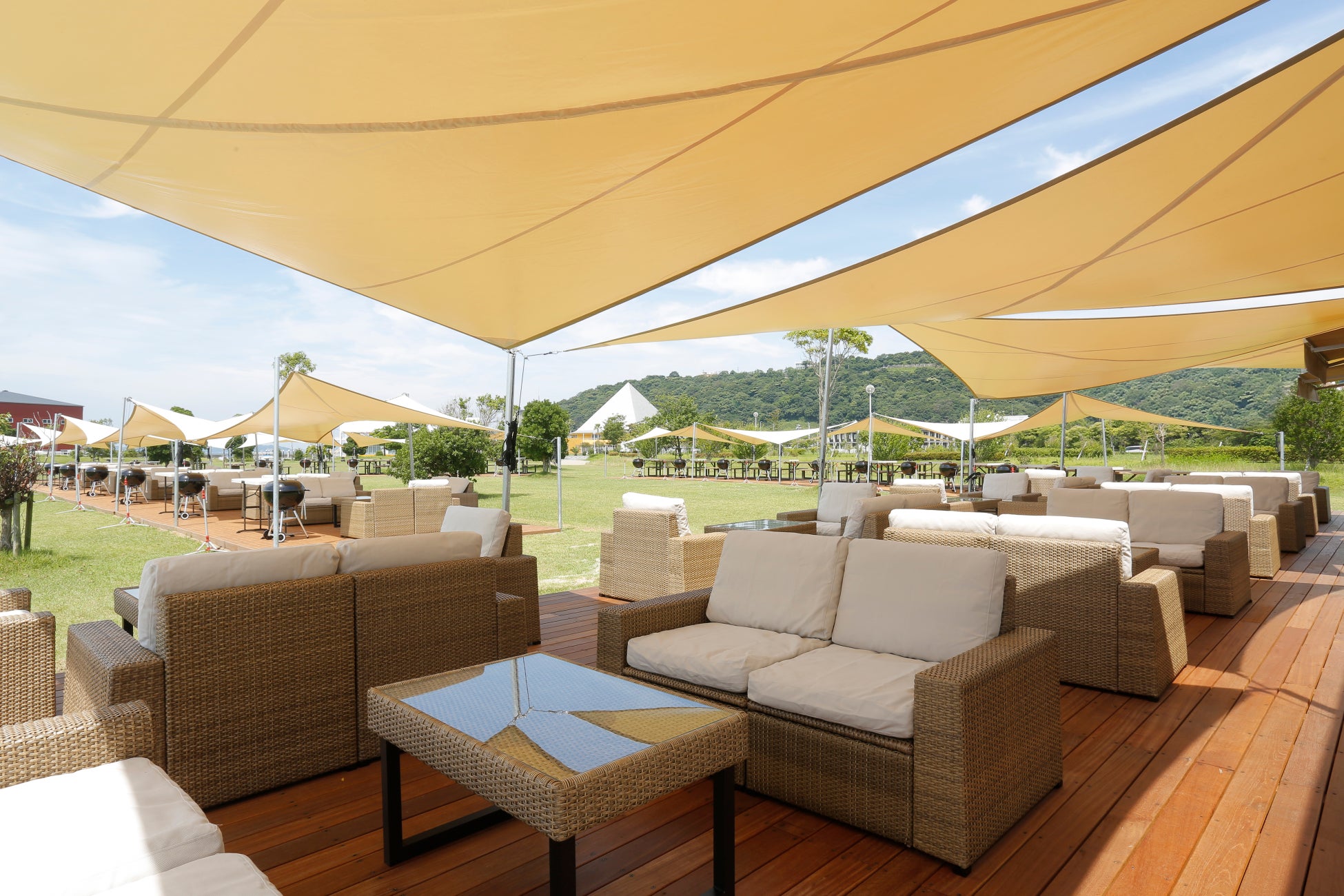 ウッドデザインパーク瀬戸のBBQサイトは開放的な屋根付きのサイトのため、天候に左右されず予定を組めるのがメリット!