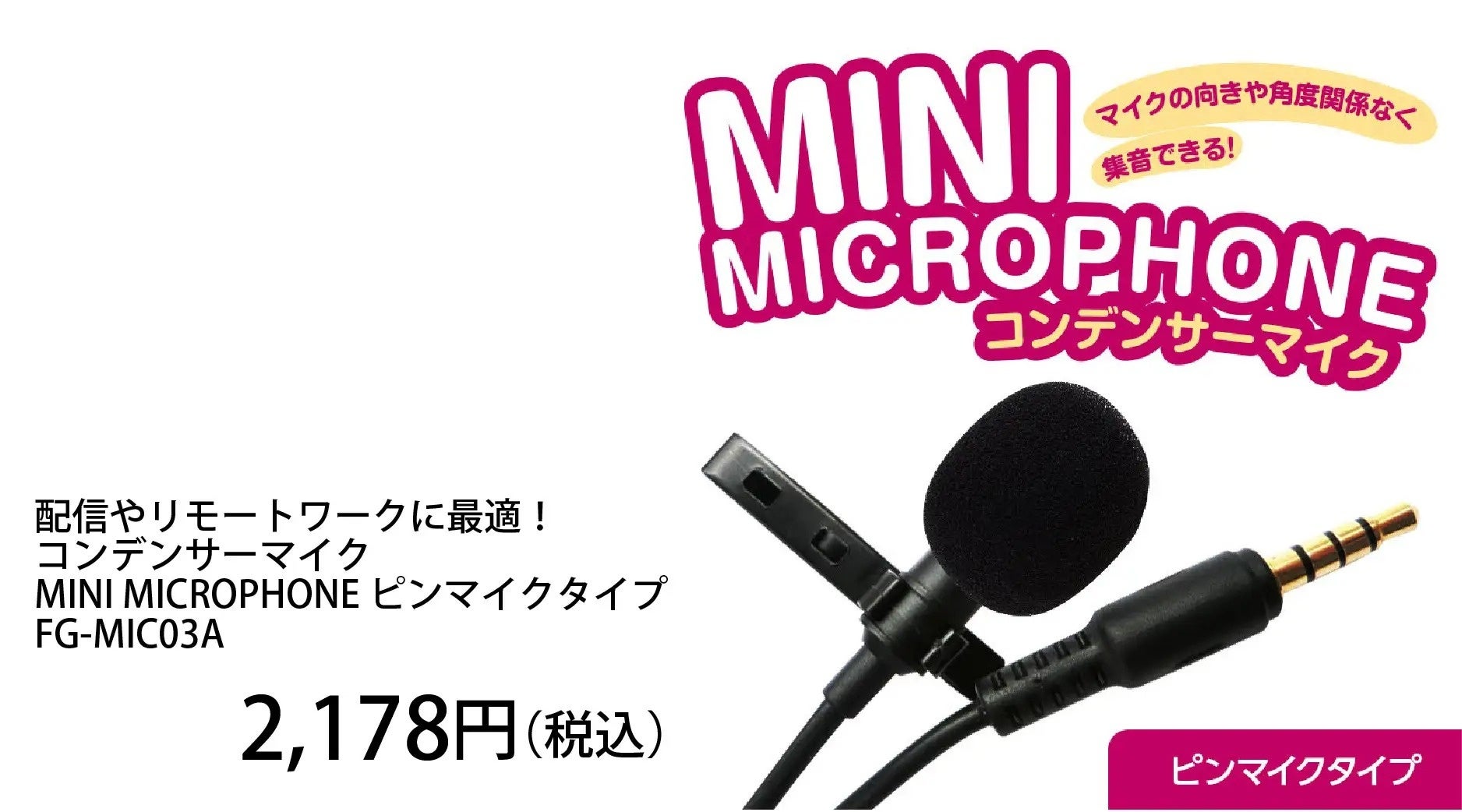 ピンマイクタイプのコンデンサーマイク FG-MIC03A 価格2,178円(税込)