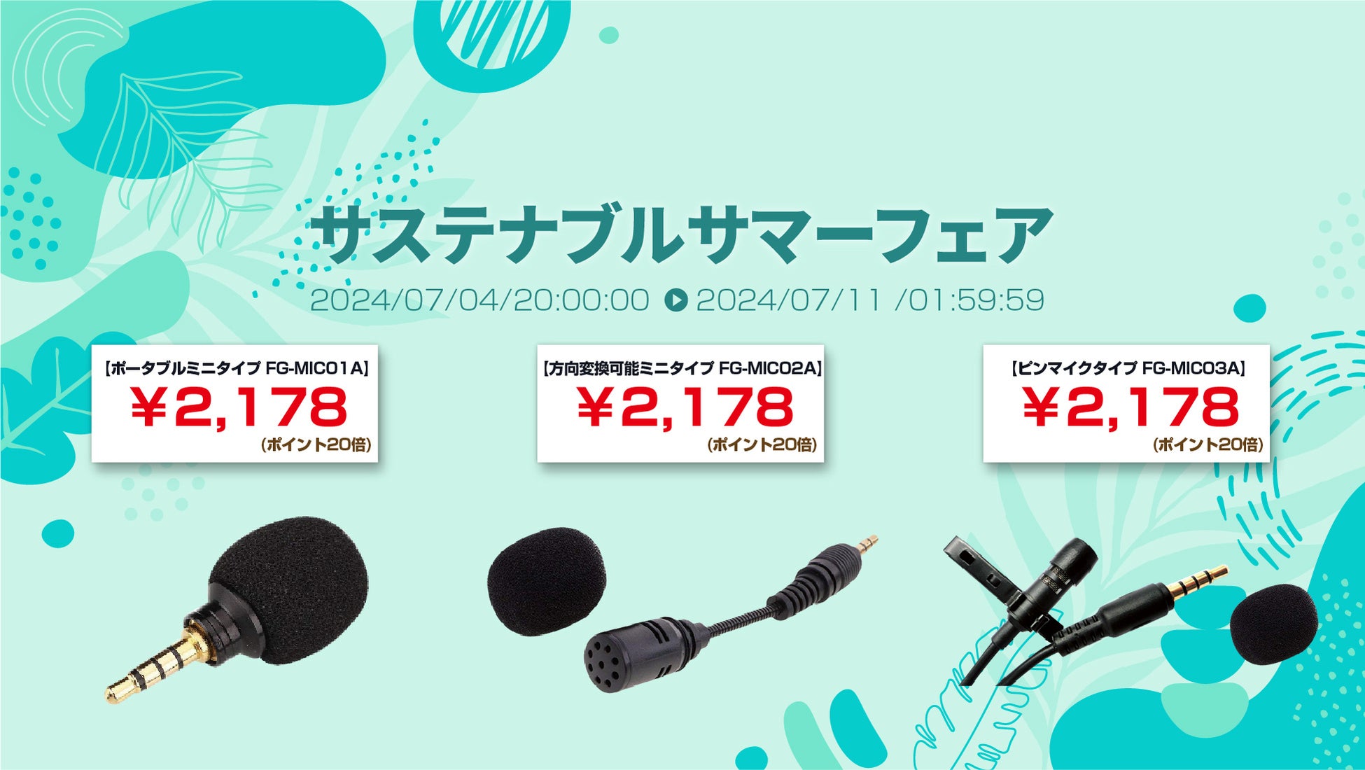 ポータブルミニタイプのコンデンサーマイク FG-MIC01A 価格2,178円(税込)