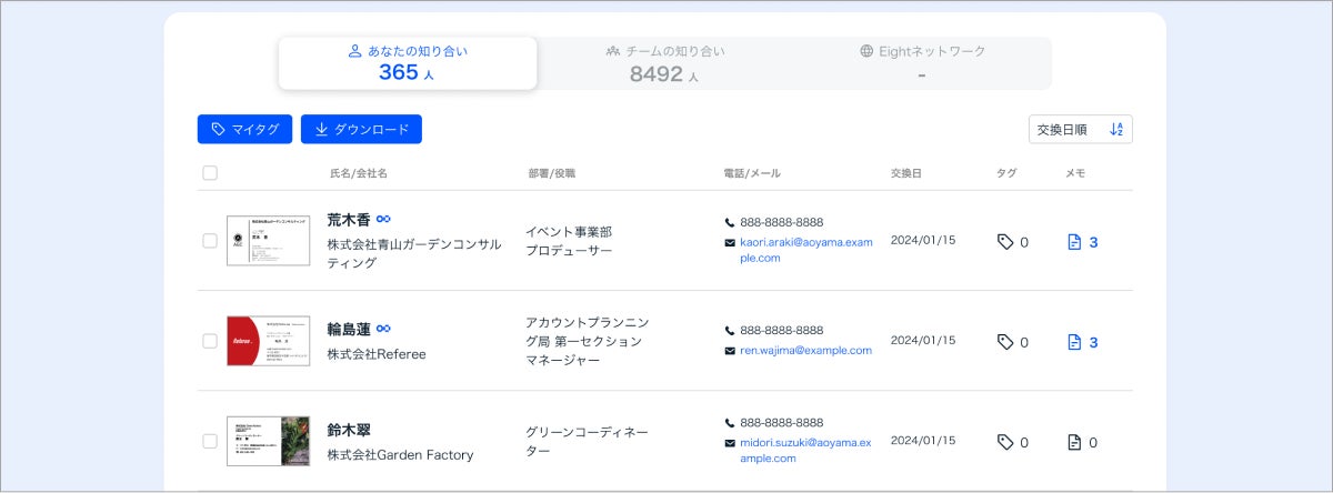 ※3:名刺情報のダウンロードは「Eightプレミアム」「Eight Team」限定の機能