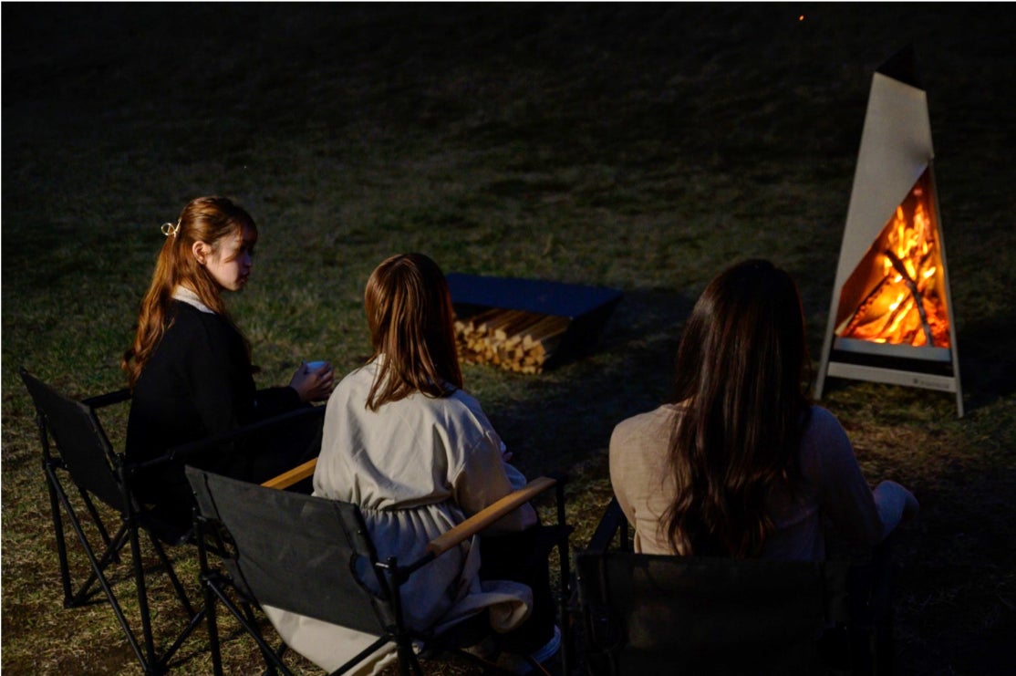 夜には焚き台に火が灯り、ゆらめく炎を眺めながら、自然の音に耳を傾ける穏やかなひとときをお過ごしいただけます。