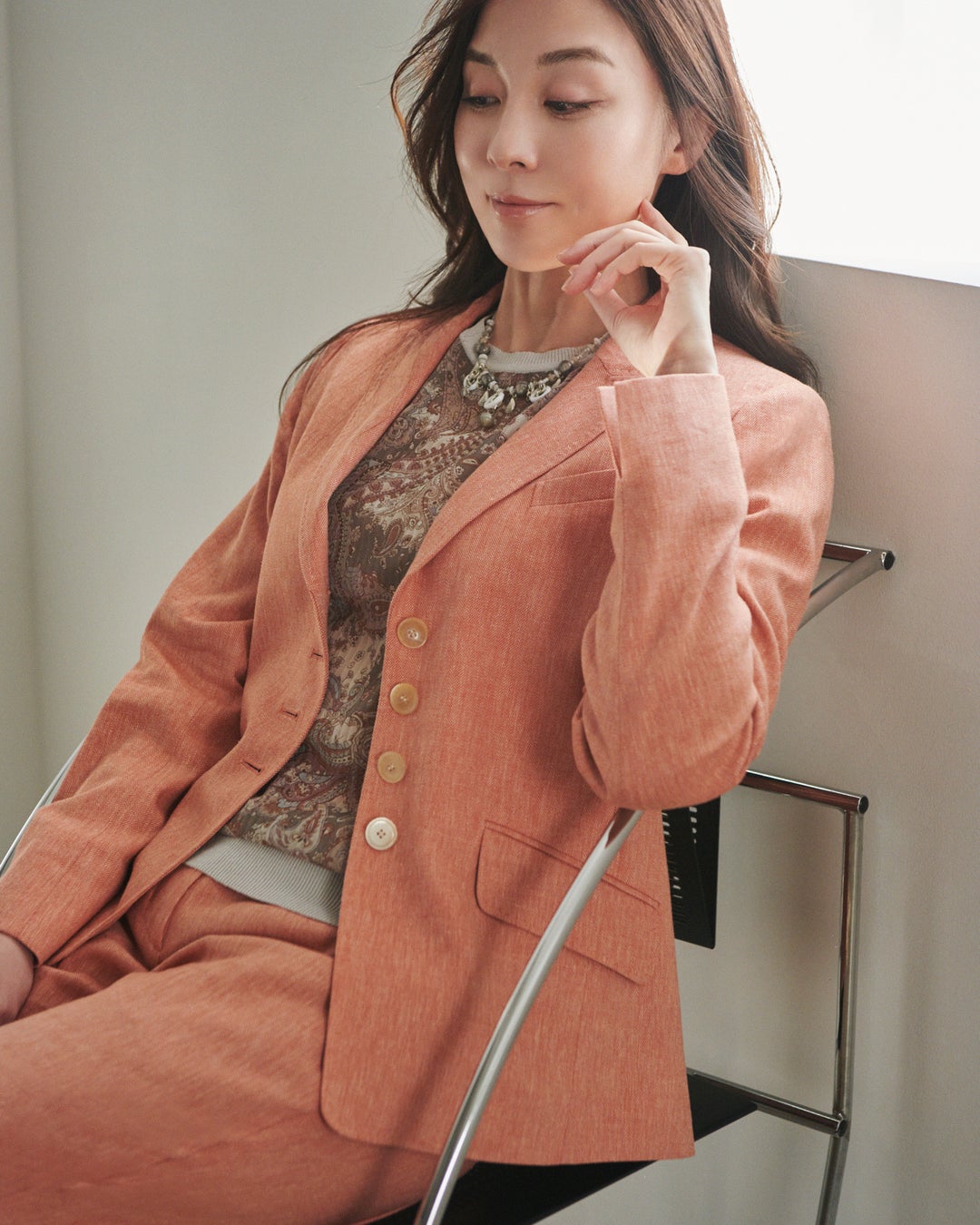 女優・伊藤歩さんが、麻やコットン素材のナチュラルな素材感と自然に抱かれるようなアースカラーのコーディネートで表現します。ぜひご覧ください。