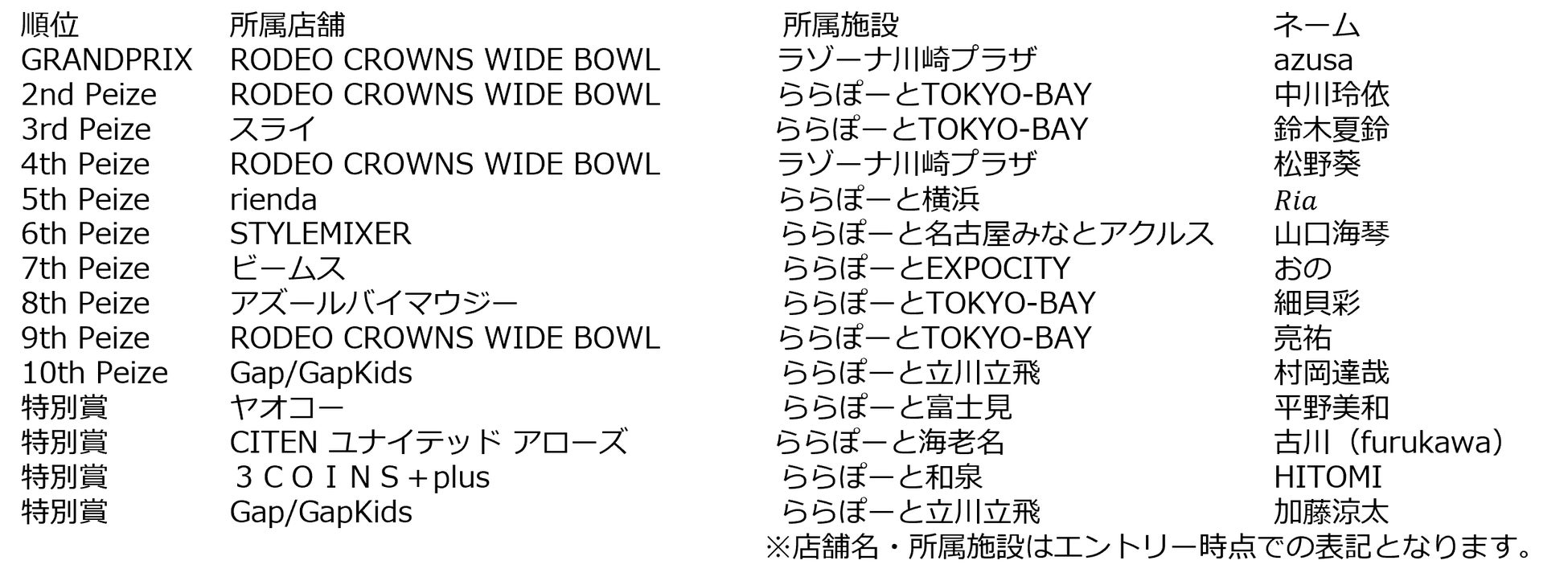 GRANDPRIXはラゾーナ川崎プラザ RODEO CROWNS WIDE BOWLのazusaさんが受賞!