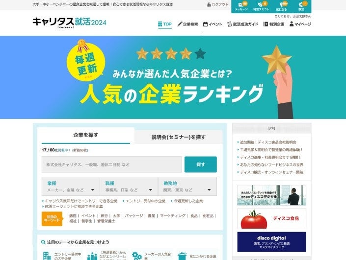 2024年度新卒就職希望者向け就職情報サイト「キャリタス就活2024」 3月1日、企業エントリースタート
