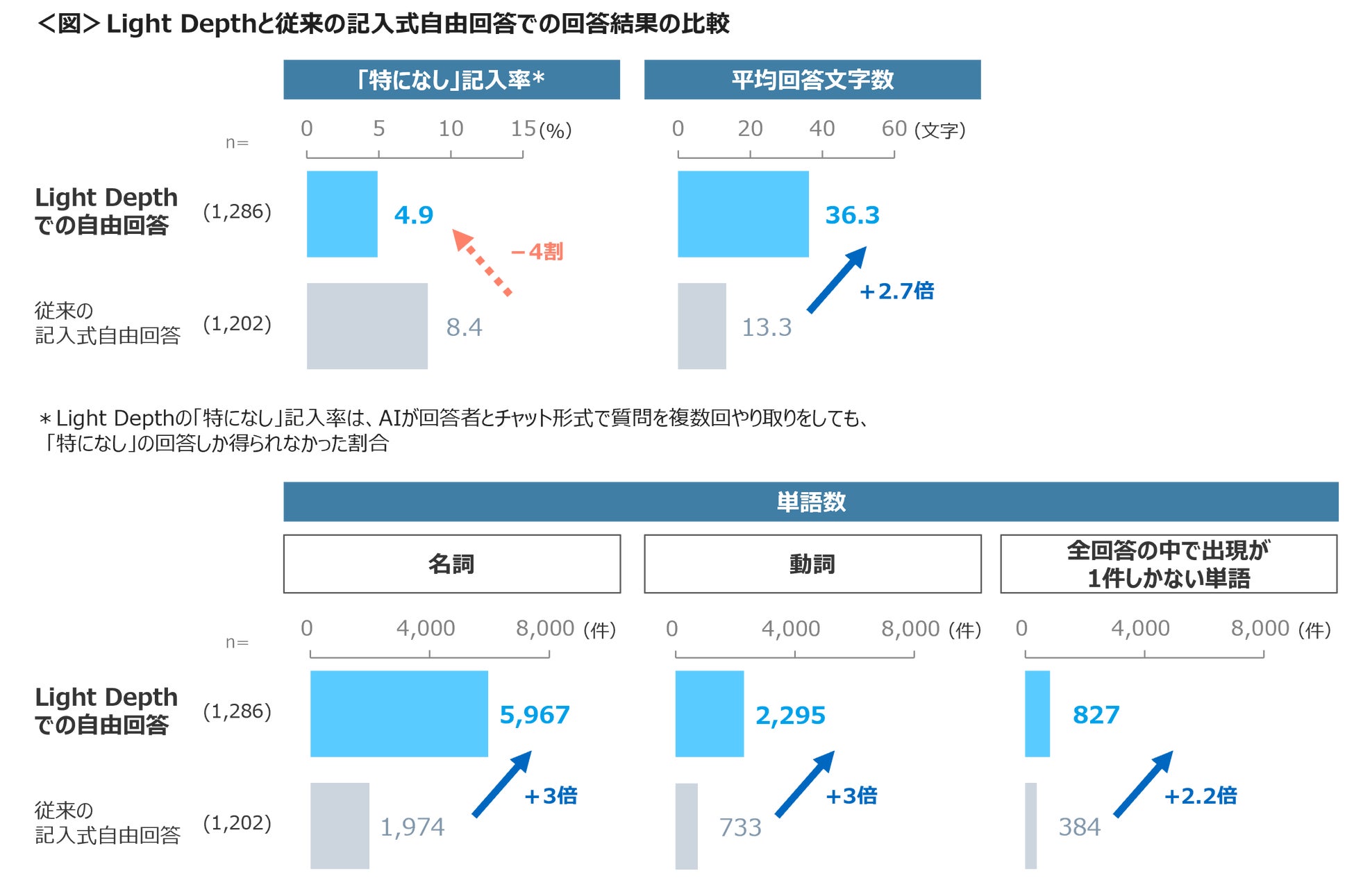 Light Depthと従来の記入式自由回答での検証結果<図>