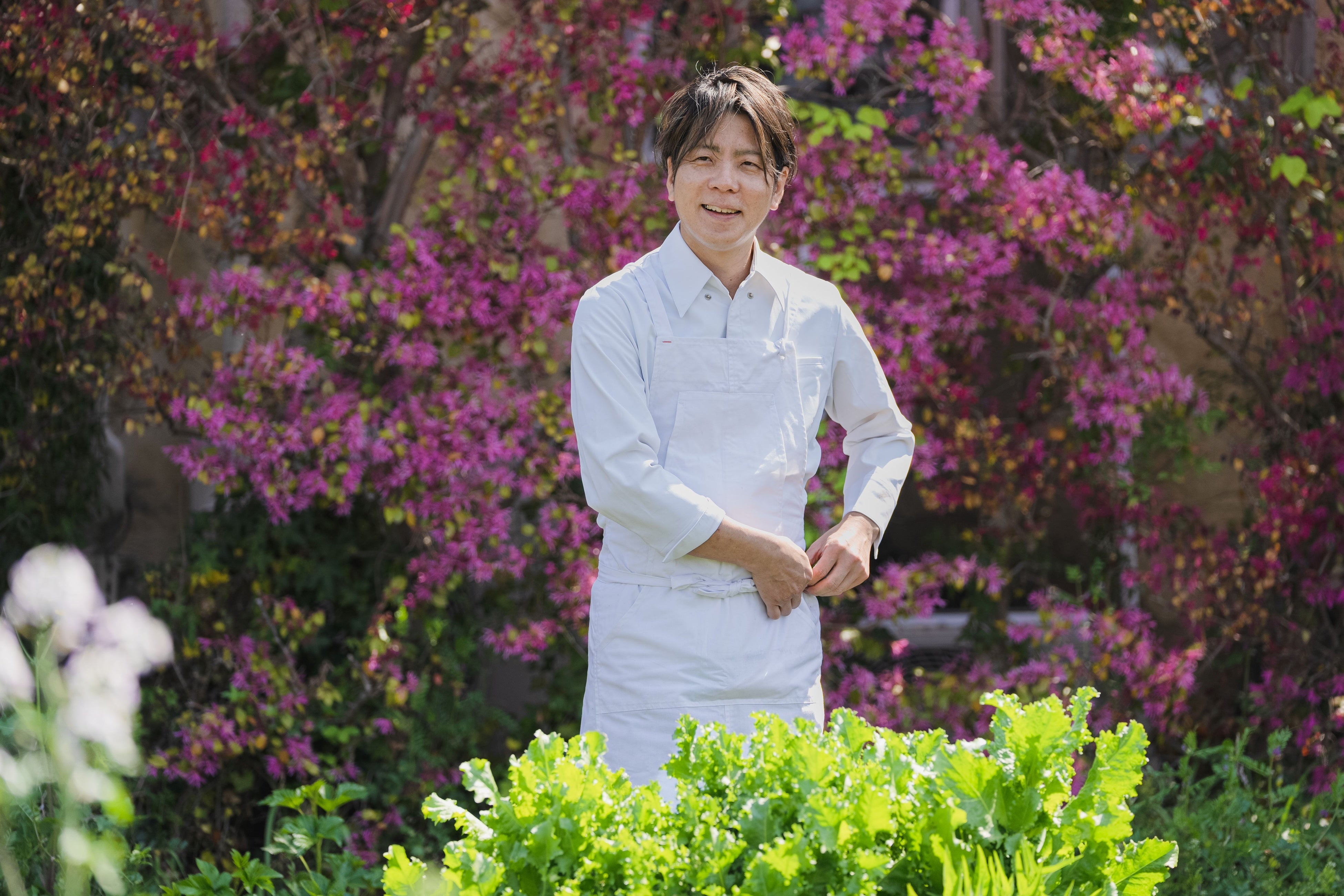 1973年、和歌⼭県⽣まれ。辻調理師専⾨学校卒業後、⼤阪のイタリアンレストラン「アルバ」に2年勤め、1994年21歳で渡伊。トスカーナ州やカンパーニャ州など、イタリア各地のレストランで修⾏する。1996年からカンパーニャ州ソレントの三ツ星(当時)「ドン・アルフォンソ 1890」でパスタ部⾨のシェフを務め、1998年帰国。同年12⽉、実家が持つ⽥んぼの真ん中に、「リストランテ アイーダ」をオープン。2007年には現在のスタイルに改装、「ヴィラ アイーダ」として再出発する。レストランに隣接する⾃家菜園で、年間約100種類以上の野菜やハーブをマダムの有⺒⽒と共に栽培。その⽇に収穫した野菜やハーブを中⼼に、近隣の⿂介、家禽、ジビエを合わせた料理を提供する「ガーデン・ガストロノミー」として、⼀⽇⼀組のみでゲストをもてなしている。