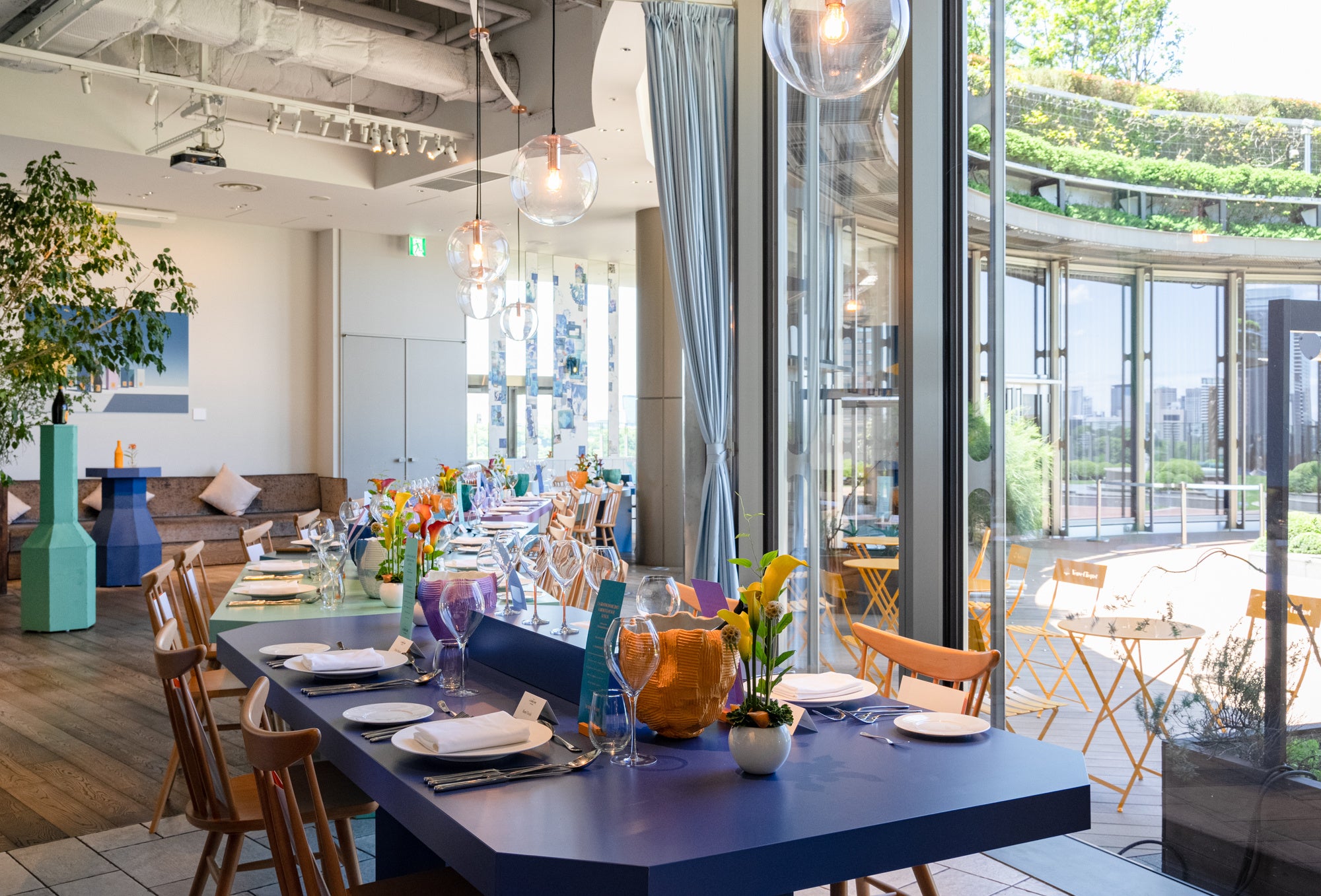 本日の会場はポップなカラーがバランス良く配置され、フランスのシャンパーニュらしいと思いました。パステルカラーが主張し過ぎず、優しさに包まれているように感じます。料理は沢山のサプライズが散りばめられており、味わいは勿論、目からも楽しむことが出来ました。