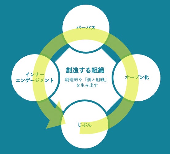 ・これら4つの要素が螺旋を描くように作用し合うことで、企業の成長と個人の成長が同時に実現する健全で強い組織がつくられる。そして、その結果としてイノベーションが創発される。