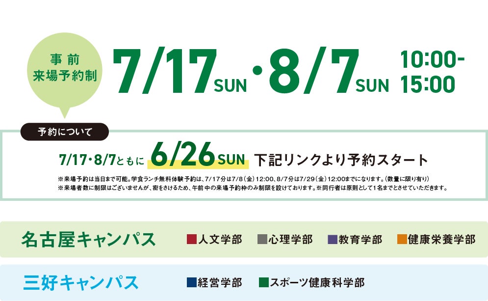 東海学園大学オープンキャンパスWEBサイト:http://www.navi.tokaigakuen-u.ac.jp/open_oc2022.php