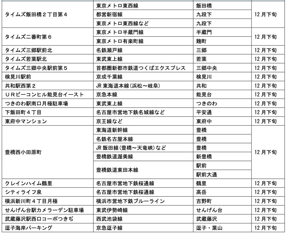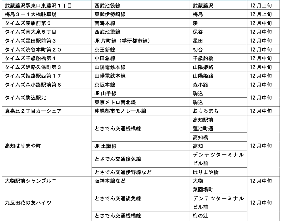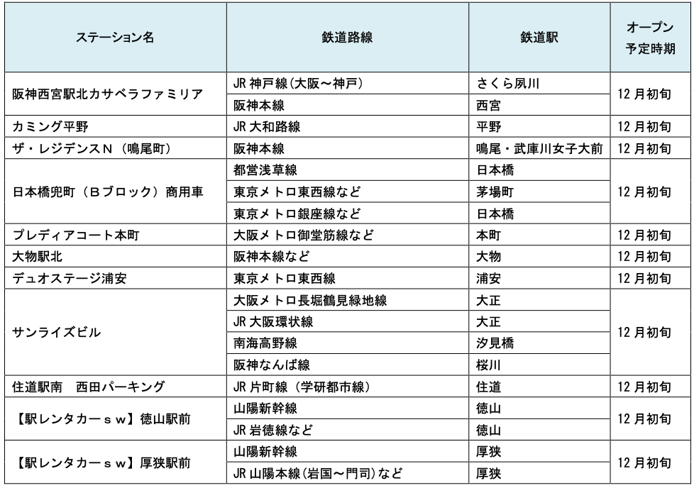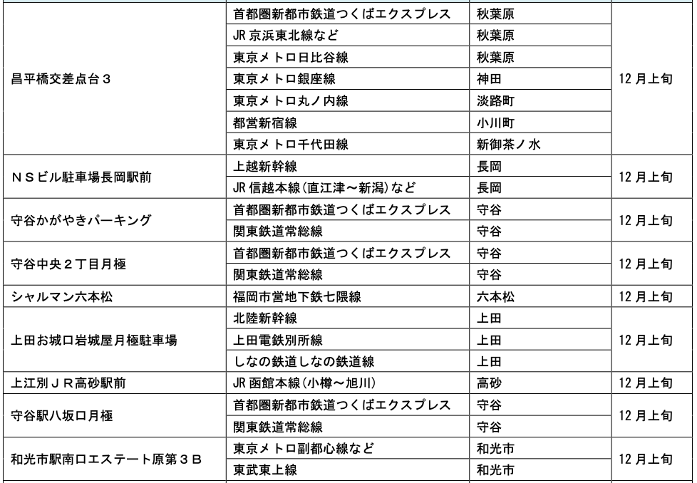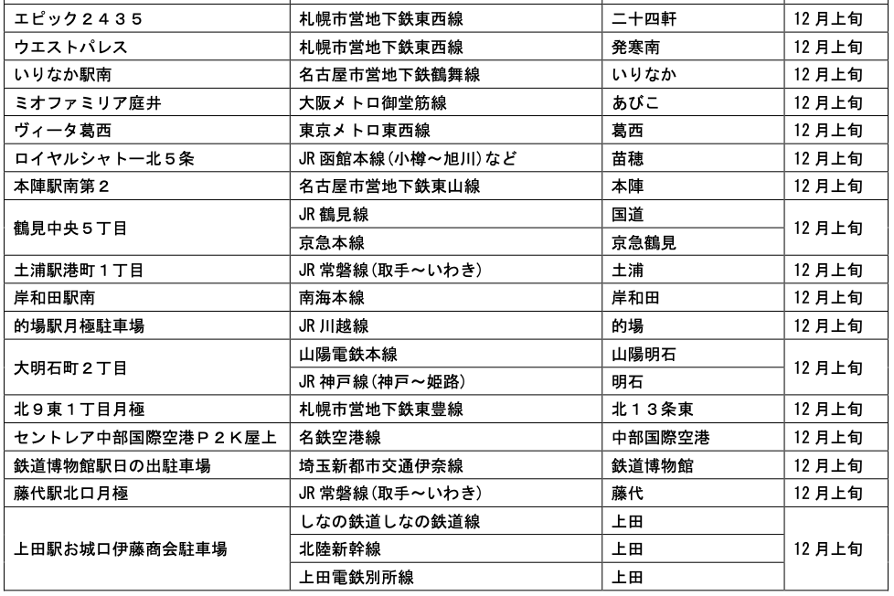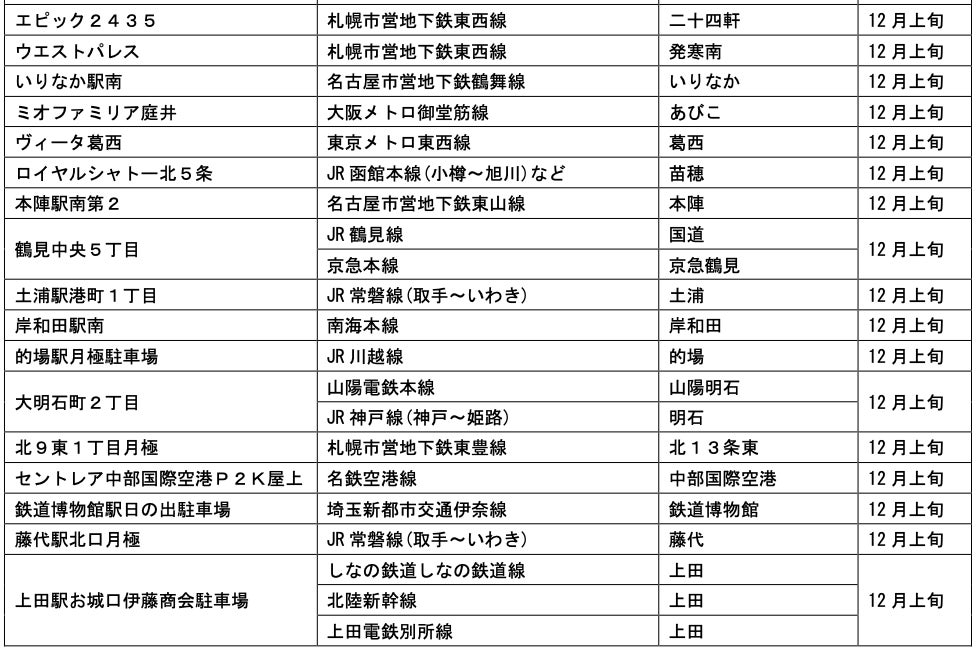 12月にオープンおよびオープン予定の「パーク&ライド」が可能な駐車場は24件、「レール&カーシェア」が可能なステーションは118件です。