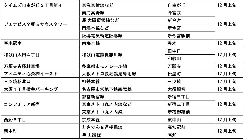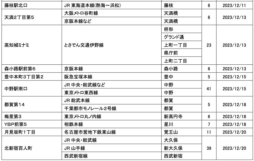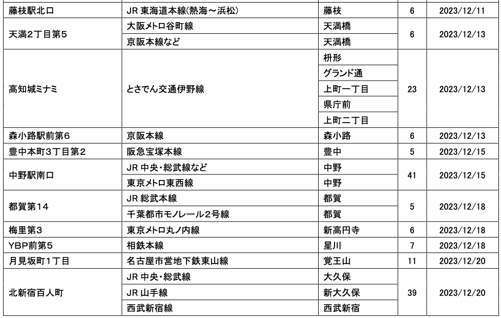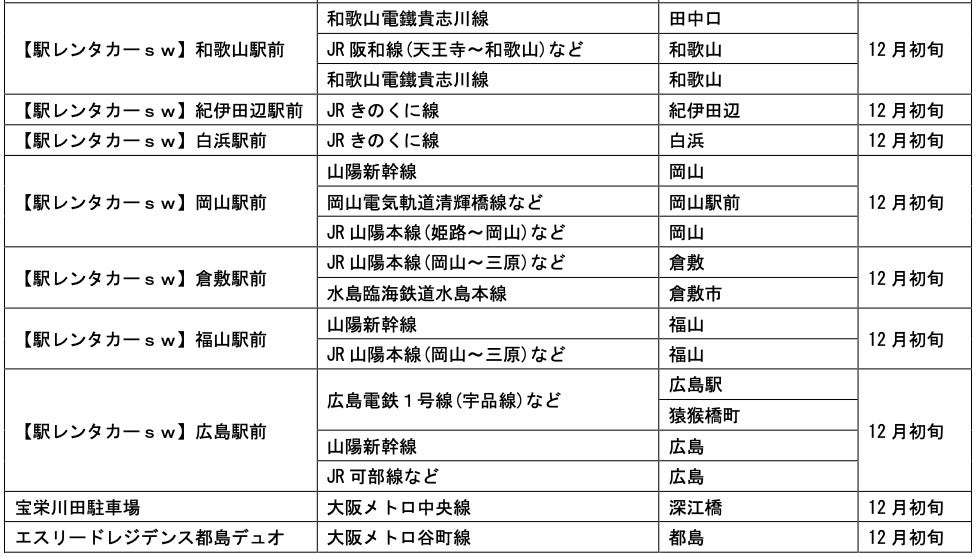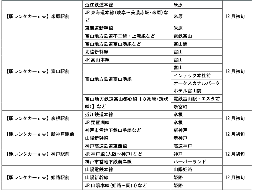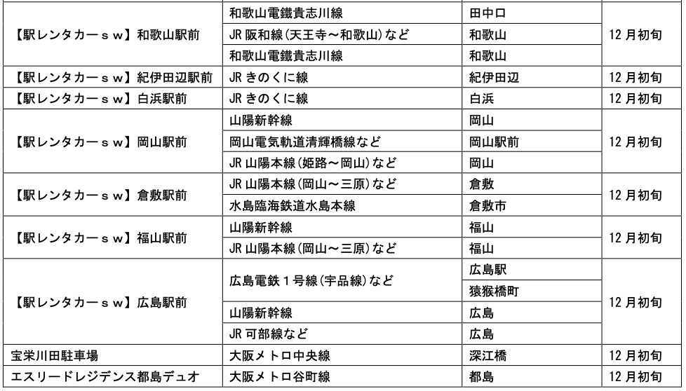 12月にオープンおよびオープン予定の「パーク&ライド」が可能な駐車場は24件、「レール&カーシェア」が可能なステーションは118件です。