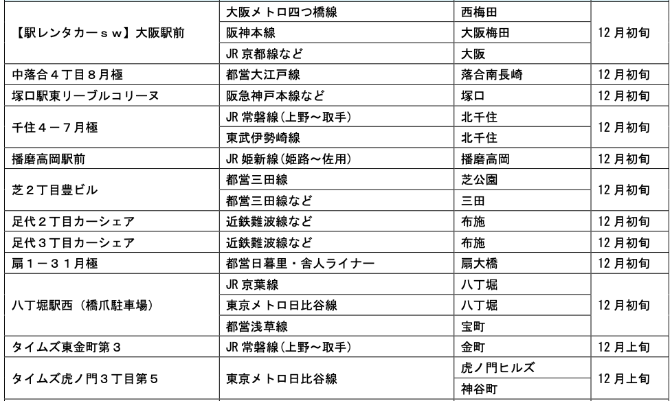【サステナビリティアクション】パーク&ライドが可能なタイムズパーキングレール&カーシェアが可能なタイムズカーステーション 12月のオープン情報