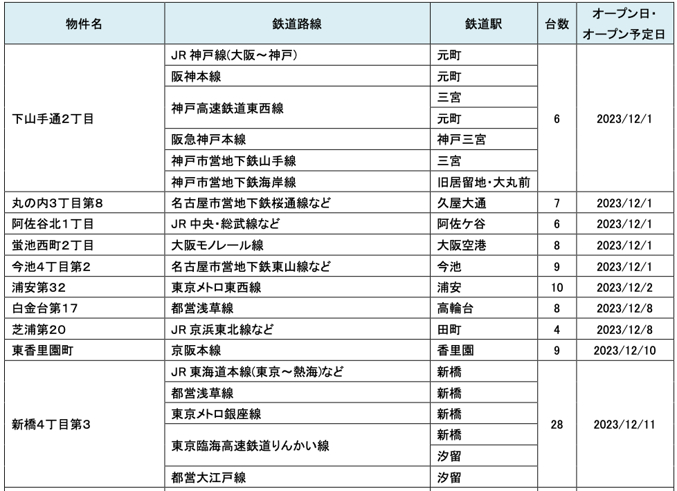 駐車場およびカーシェアステーションのオープン予定については毎月第5営業日にお知らせいたします。