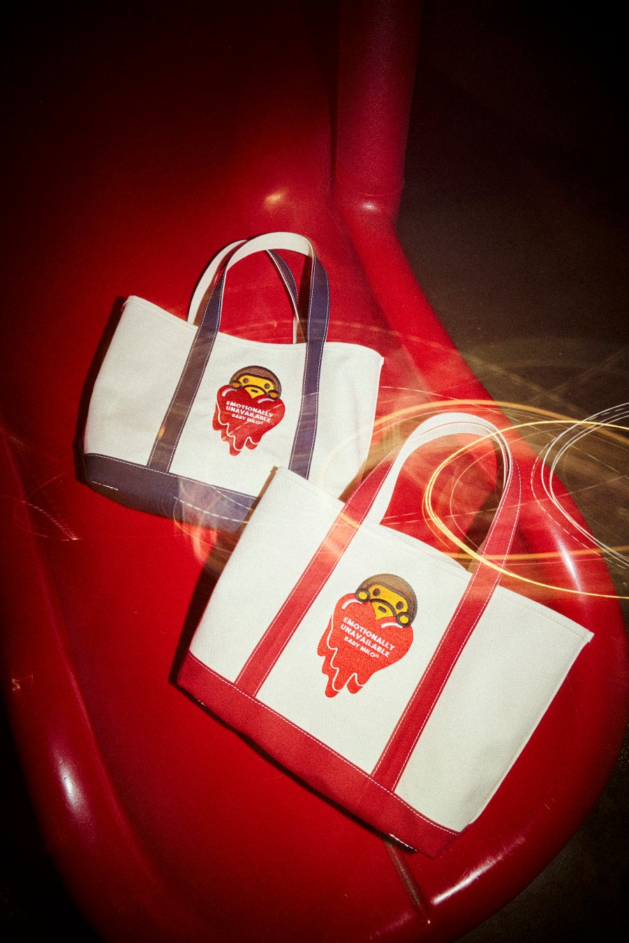 今回のコラボレーションでは、このハートのロゴとBAPE®︎を象徴するモチーフを組み合わせたアイテムを展開。Tシャツ、トートーバッグ、キーチェーンをご用意しました。