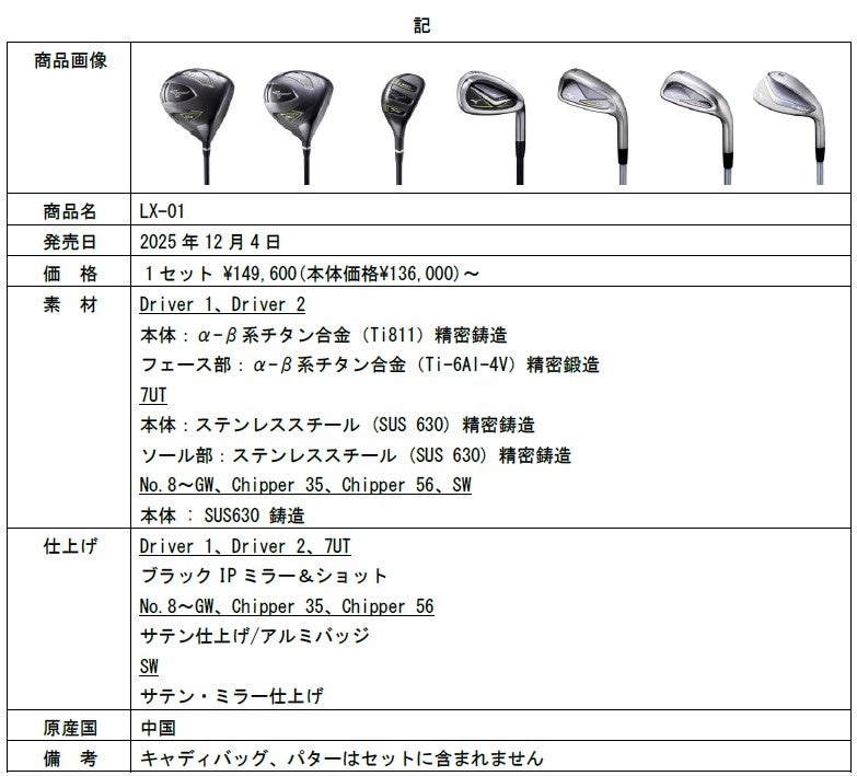ミズノは、多くのゴルファーにとって目標であり悩みである“100切り”を達成するための機能を追求したクラブセット「LX-01」(エルエックス ゼロワン)を12月4日にミズノ公式オンライン、一部のミズノ直営店※1で発売します。