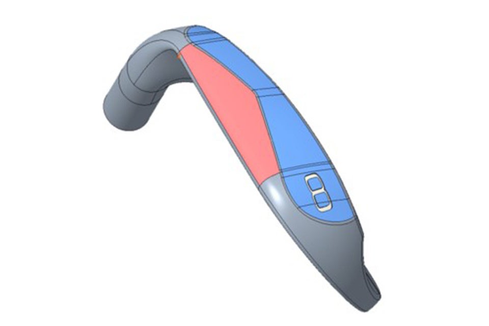 7番ユーテリティ、8~9番アイアン、PW、GWは、それぞれ“ダフりにくい”ことを追求したソール形状を採用しています。7番ユーティリティは3面に分かれたソール形状、アイアンはリーディングエッジ(右図赤色部分)とトレーリングエッジ(右図青色部分)をグラインドしたソール形状により、“ダフリにくさ”と“抜けの良さ”を追求しています。ボール手前の地面を打ってしまった際でもソールが滑り、とにかく前進するためのクラブ設計です。