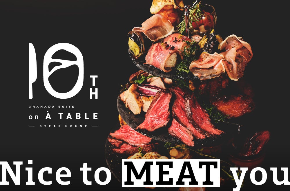 全国でホスピタリティビジネスを展開する感動創出企業の株式会社ポジティブドリームパーソンズ(本社:東京都渋谷区、代表取締役社長:西村 輝夫) が運営する福岡・中洲川端のレストラン「GRANADA SUITE on À TABLE(グラナダスィート オン ア ターブル)」は今年10月、10周年を迎えるにあたってアニバーサリーイベント「Nice to MEAT you」を開催。“最高の肉料理との出会い”をテーマに、肉料理専門店としての集大成を全4回のブッフェイベントと周年限定メニュー等を通して、お客様へ感謝の気持ちをお届けいたします。九州和牛や旬の野菜を使用したブッフェイベントの開催、イベントで登場したメニューを期間限定でお楽しみいただけるなど、最高の肉料理との出会いをご提供いたします。