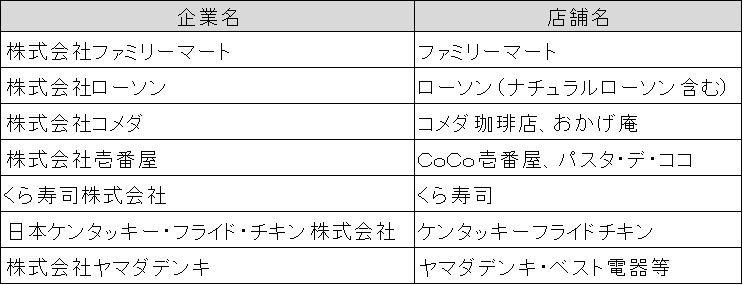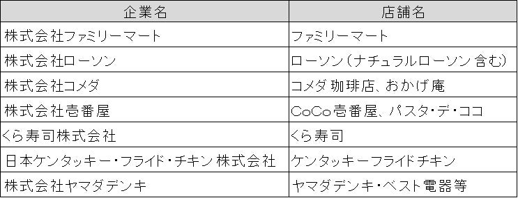 - ご利用可能な店舗(一部抜粋(順不同))