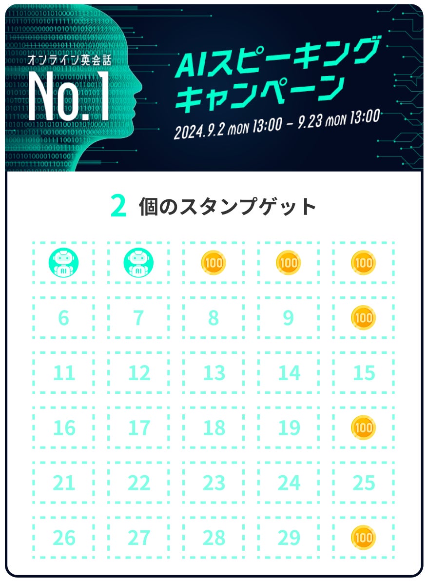 ネイティブスピーカーと回数無制限のオンライン英会話サービス「ネイティブキャンプ英会話」を展開する株式会社ネイティブキャンプ(東京都渋谷区 代表取締役:谷川国洋)は、AI教材を使用したキャンペーン「AIスピーキングキャンペーン」を開催いたします。条件達成で、最大1,600円分のコイン(800コイン)を獲得することができます。