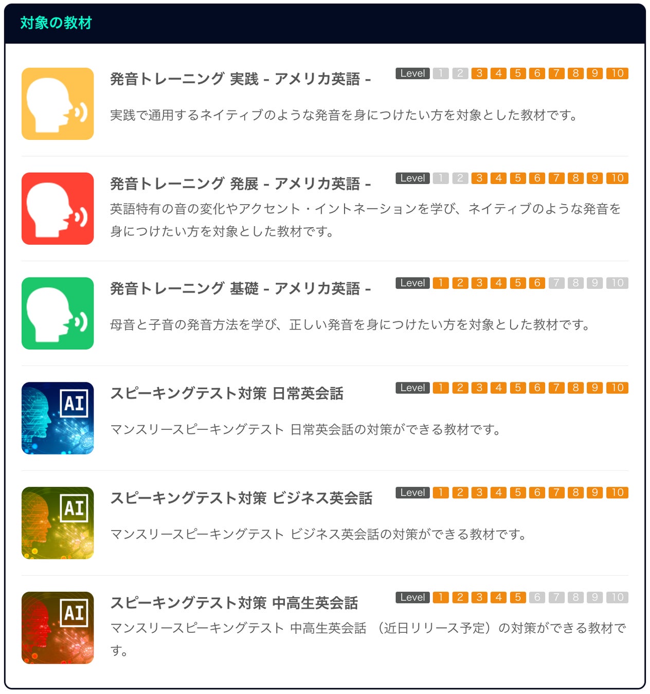 発音トレーニング 実践 - アメリカ英語 -(https://nativecamp.net/textbook/series/123)