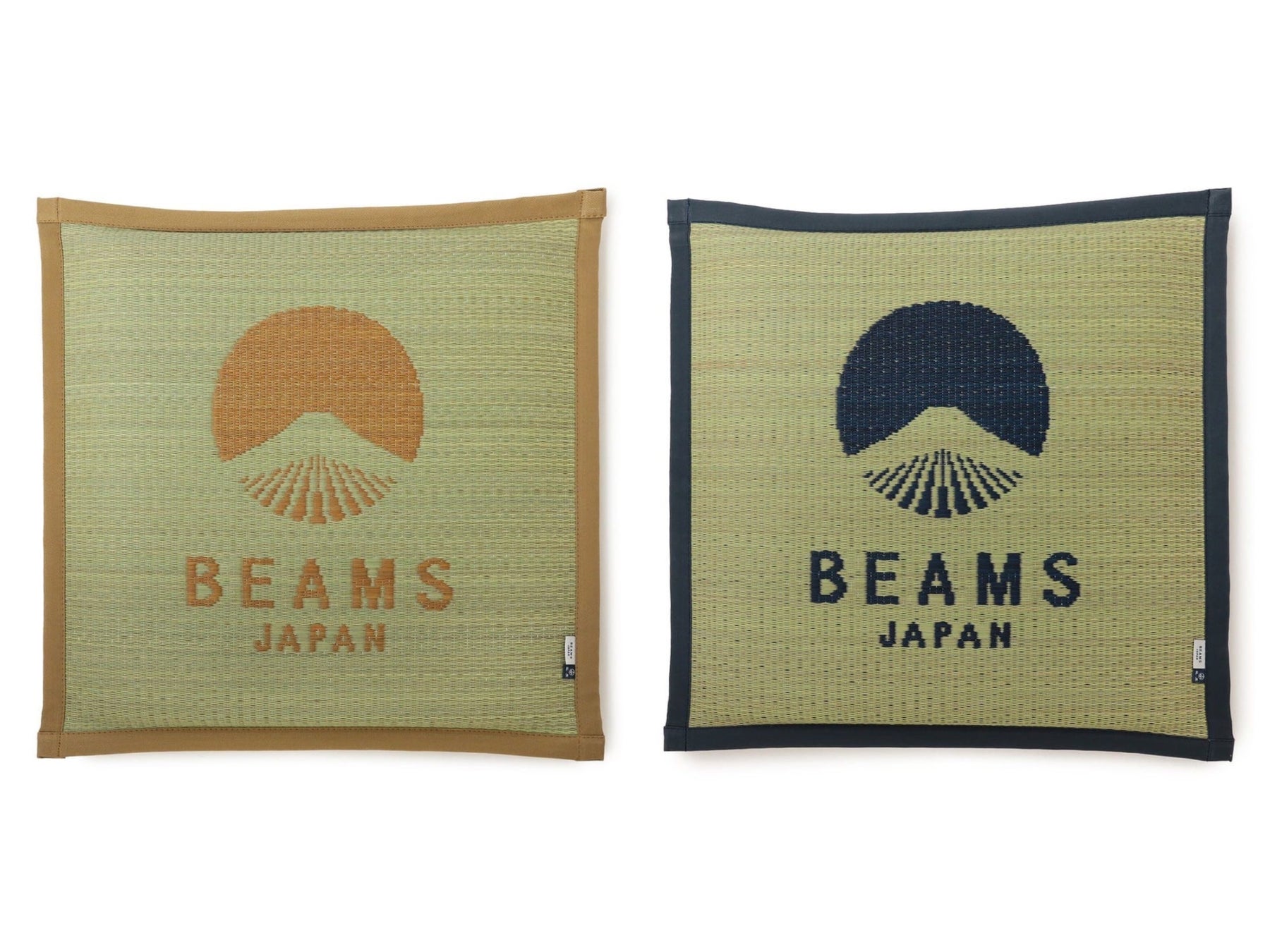 〈BEAMS JAPAN〉のロゴを配した座布団。ロゴは、“い草”のカラーが引き立つ上品なネイビーと“い草”に馴染むナチュラルなベージュに染色しました。また、生地の模様を立体的に見せるためにジャカード織りを施すなど、各工程を熟練された職人の手作業で仕上げています。放湿と吸湿性に優れ、サラリとした感触が心地良い“い草”の座布団です。