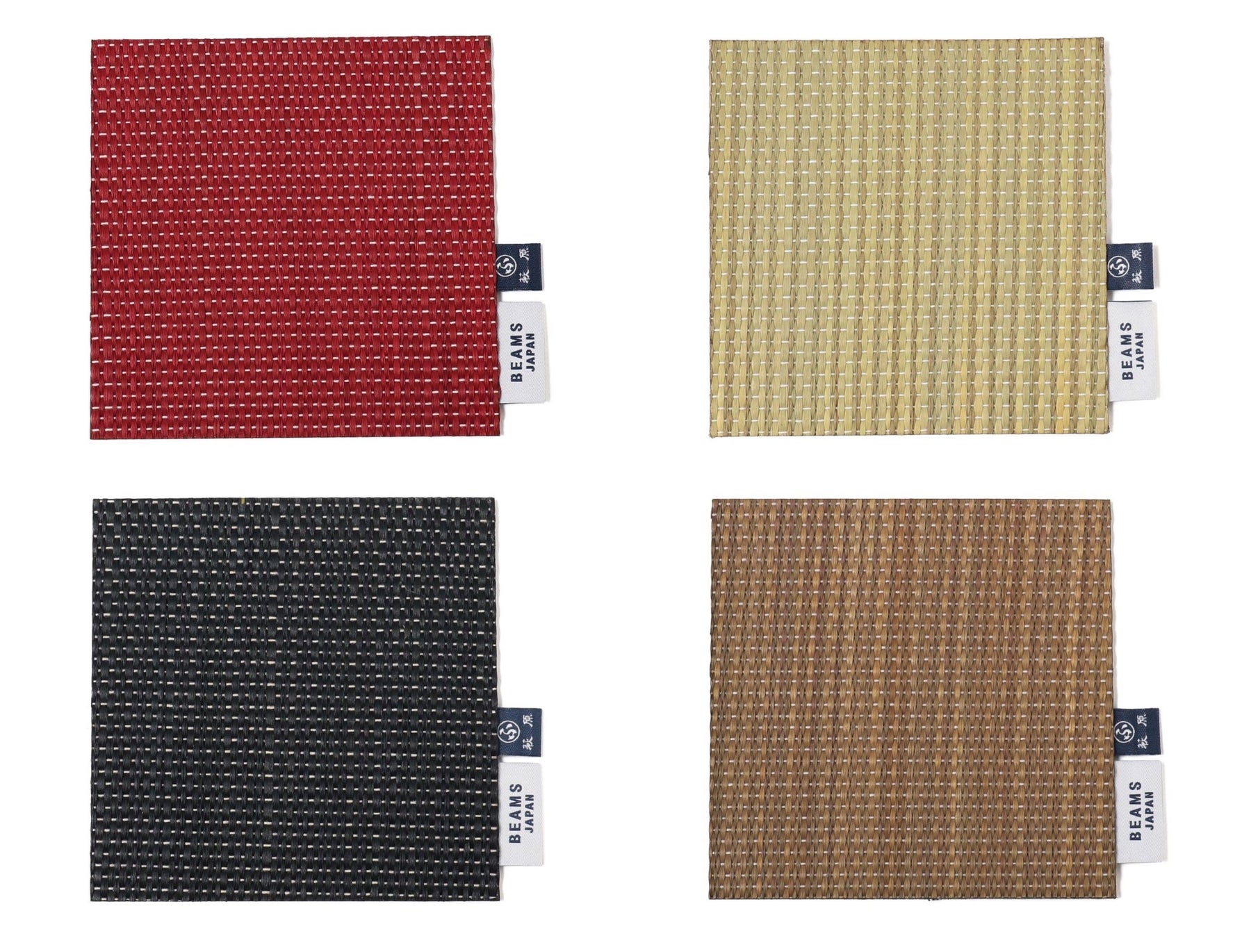 “い草”を使用したコースターとランチョンマット。特殊な加工技術で2枚を貼り合わせているため、程よい厚みがあり、生地がヨレず使いやすい仕上がり。カラー展開は、ブラック・ベージュ・ブラウン・レッドと豊富にご用意しました。
