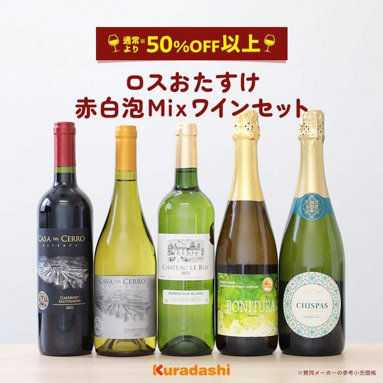 「ロスおたすけワインセット」は、賞味期限がないにもかかわらず、ラベルやコルクのキズ、国際情勢や自然災害による在庫の滞留などの理由で廃棄されてしまう、品質には問題がない「ロスワイン」を5本セットにした商品です。通常価格よりも50%OFF以上のお得な価格で販売いたします。キリッとした辛口からフルーティーなものまで揃っており、世界各国のワインを味わいたい方や購入時に種類が多くて迷ってしまう方に向けた、気軽にさまざまなワインをお試しいただけるセットです。