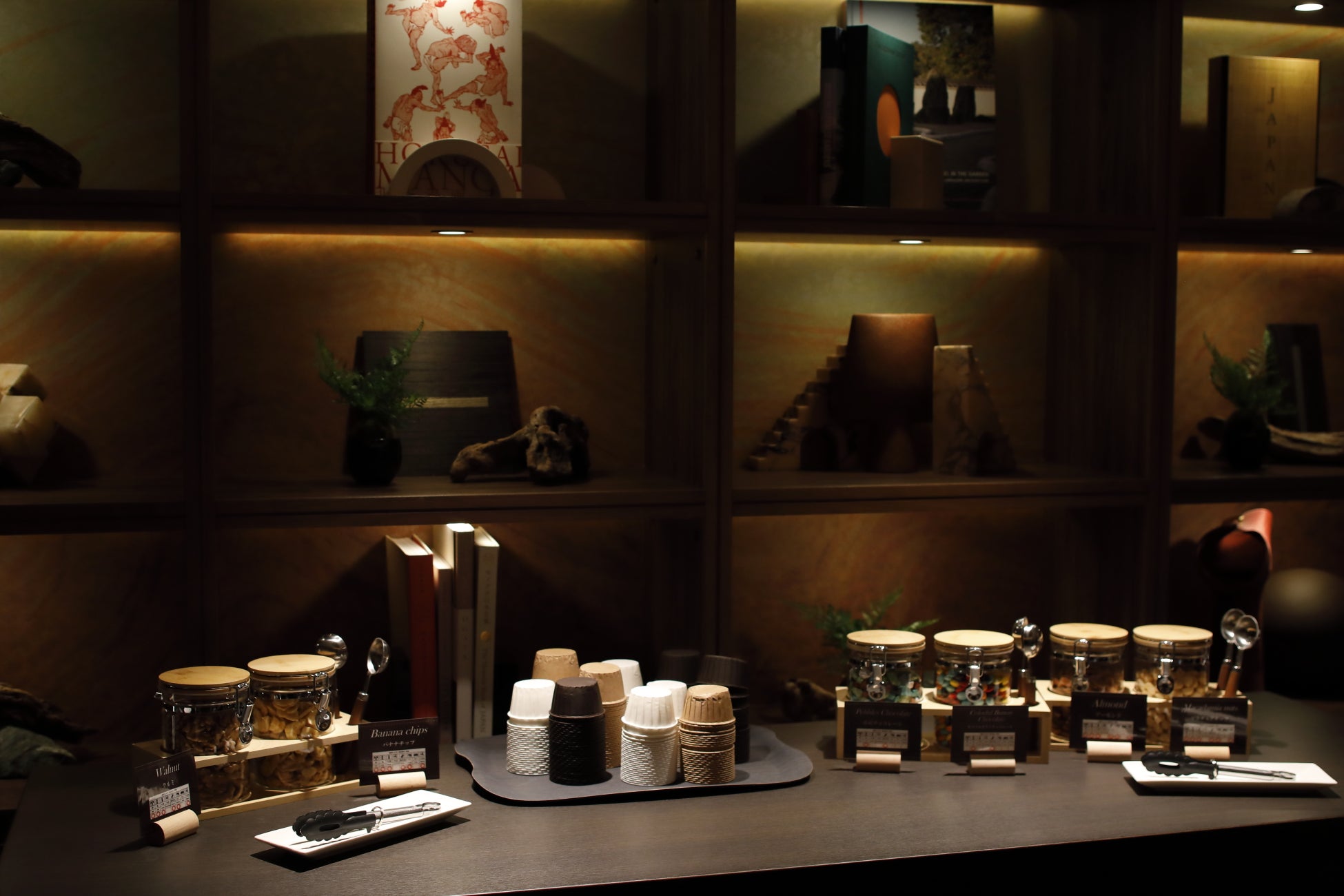 エグゼクティブスイート翠嶺のご宿泊者限定でご利用いただける特別なラウンジ。紅葉名所である二見吊橋からの美しい景色をモチーフにした、趣ある空間です。ドリンクやアルコールを取り揃えており、心安らぐ時間をお過ごしいただけます。