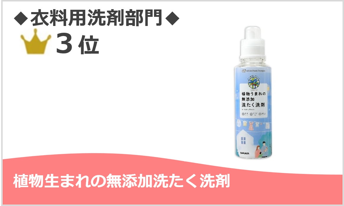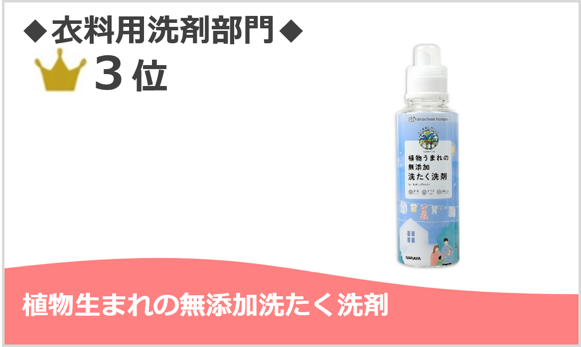 石油系合成界面活性剤・蛍光増白剤・漂白剤・香料・着色料・抗菌剤の6つの成分が無添加ながら洗浄力があると評価されています。