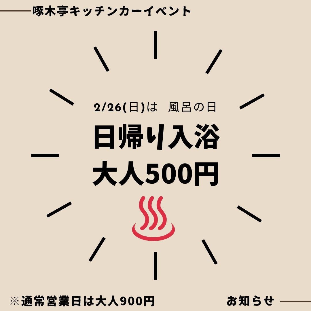 通常900円の入浴料金がこの日は500円で入浴ができる。