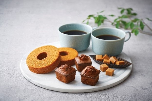 本イベントでは、TAICHIRO MORINGA(タイチロウモリナガ)の人気商品「キャラメルバウム」と「焦がしキャラメルフィナンシェ」の魅力を最大限に引き立てるために、萩原珈琲と共同開発したブレンド珈琲「かおりブレンド」「うまみブレンド」とのペアリングメニューを楽しむことができます。両社の専門性を活かしたイベントにより、お客様に心惹かれる「をかしな体験」をお届けいたします。