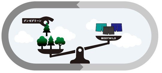 グンゼ株式会社(本社:大阪市北区、社長:佐口 敏康、以下グンゼ)は、連結子会社であるグンゼグリーン株式会社(本社:兵庫県尼崎市、社長:濵松 陽一郎、以下グンゼグリーン)と連携して、温室効果ガスの排出量より吸収量が上回るカーボンネガティブを達成しました。グンゼグリーンの緑化事業による吸収量と「BODY WILD」で展開している「立体成型3D-MADEボクサー」と「カットオフ®ボクサー」(以下対象商品(※))生産時の排出量は九州大学都市研究センターが一般社団法人ナチュラルキャピタルクレジットコンソーシアムの協力の下、算定。その結果、同センターが開発した手法による分析の下、「BODY WILD」対象商品がカーボンネガティブを達成していることが認められました。