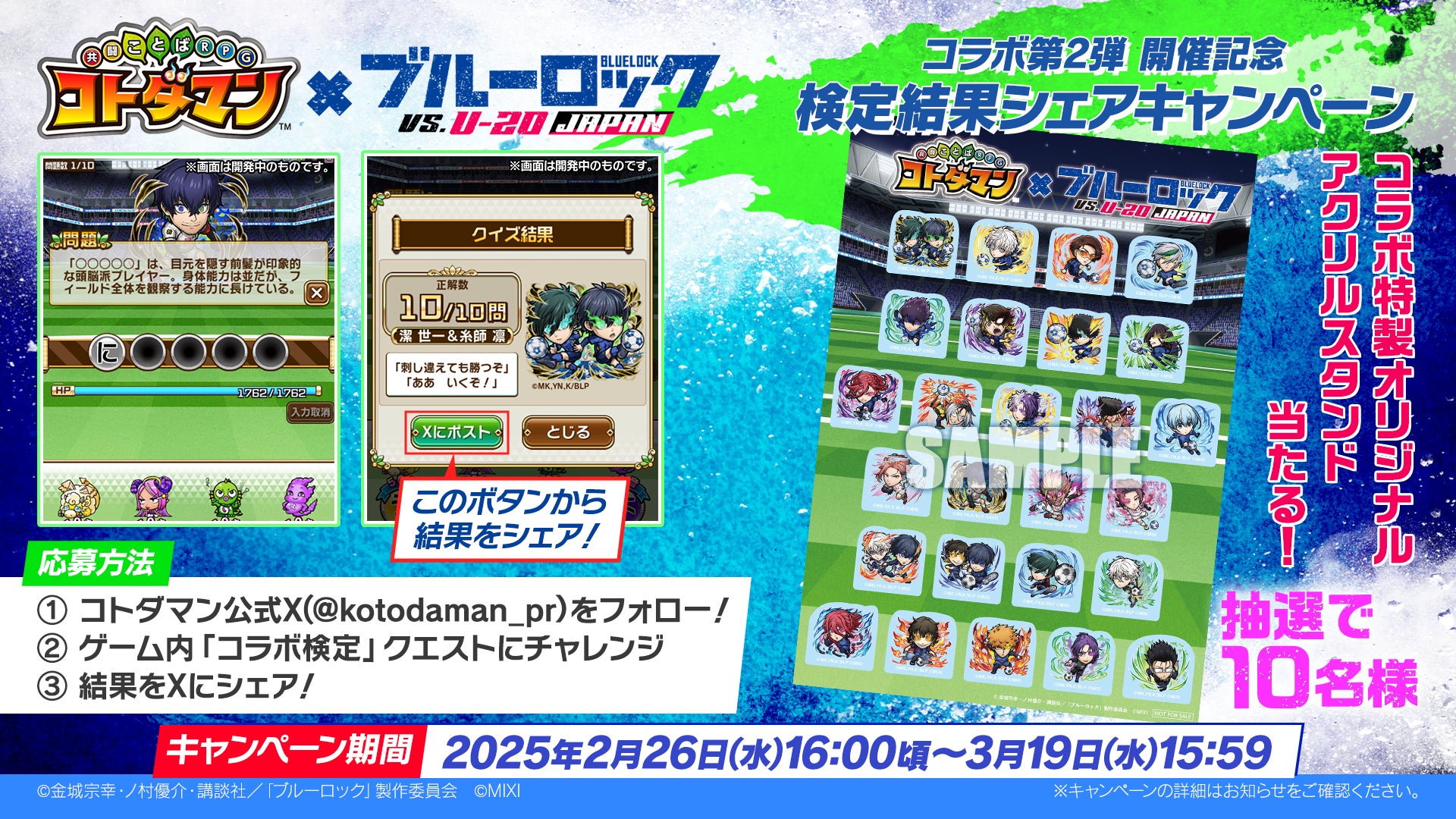 『コトダマン』 × TVアニメ『ブルーロック』コラボ第2弾 開催記念 検定結果シェアキャンペーン |
