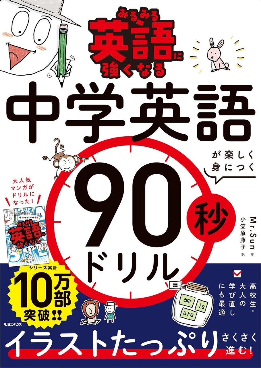 このたび、株式会社マガジンハウス(本社:東京都中央区、代表取締役社長:鉄尾周一)は、累計14万部を突破した大ヒット学習マンガシリーズ『ゼロからわかる!みるみる』発のドリル『みるみる英語に強くなる 中学英語が楽しく身につく90秒ドリル』(Mr.Sun・著/小笠原藤子・訳)を、2026年1月29日(木)に全国の書店・インターネット書店にて発売いたします。