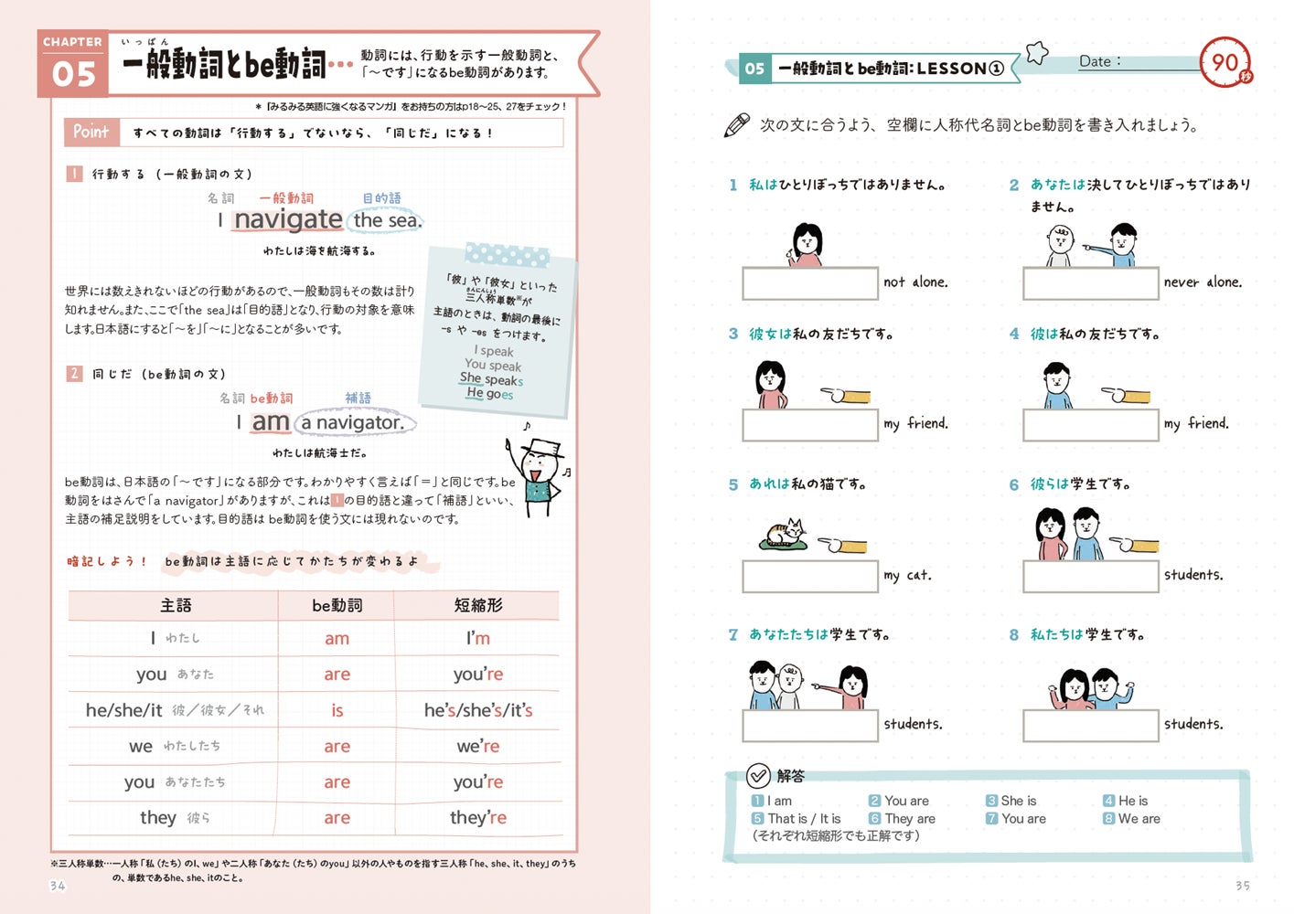 本書は、続々重版で4万部を突破した『ゼロからわかる! みるみる英語に強くなるマンガ』で読んだ内容をしっかり身につけられるドリルです。短い時間で、気軽に続けられることをポイントにしてつくりました。